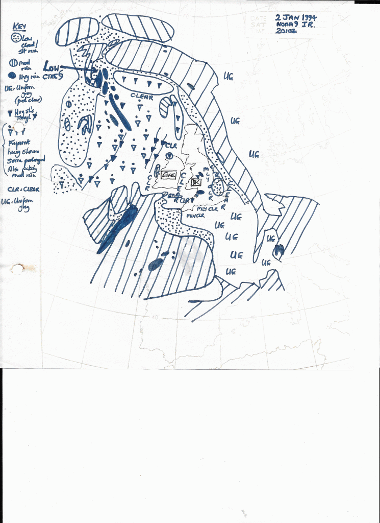 02 January, 1994: 2010Z NOAA 9 I.R. Satellite Cloud Analysis
