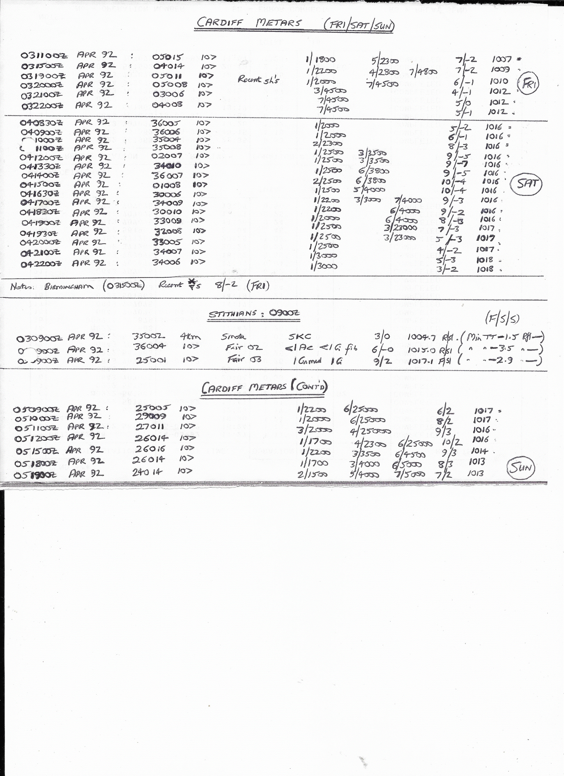 03 April, 1992: Cardiff METARS (03, 04 & 05 April, 1992)