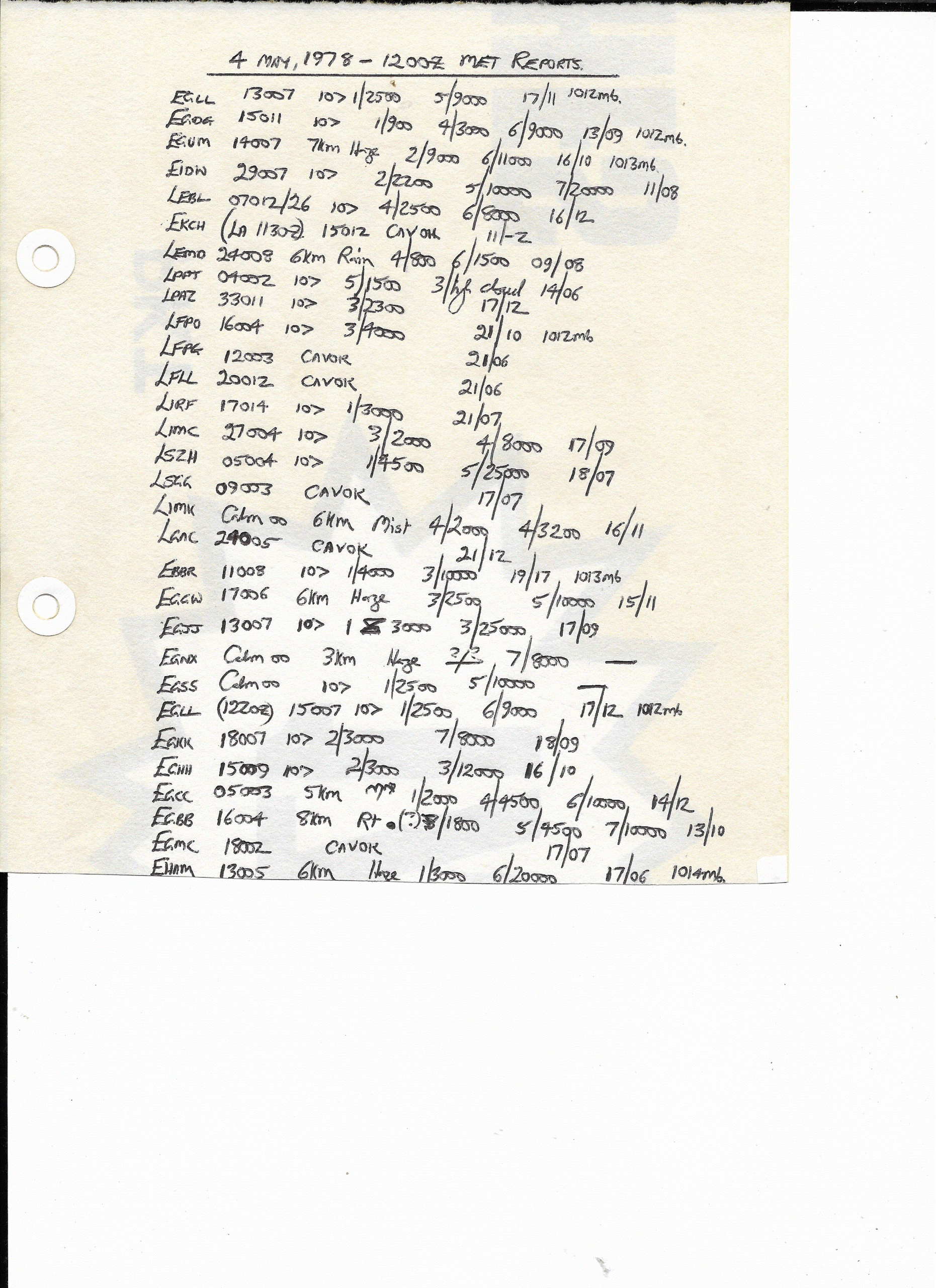 04 May, 1978: 1200Z European METARS