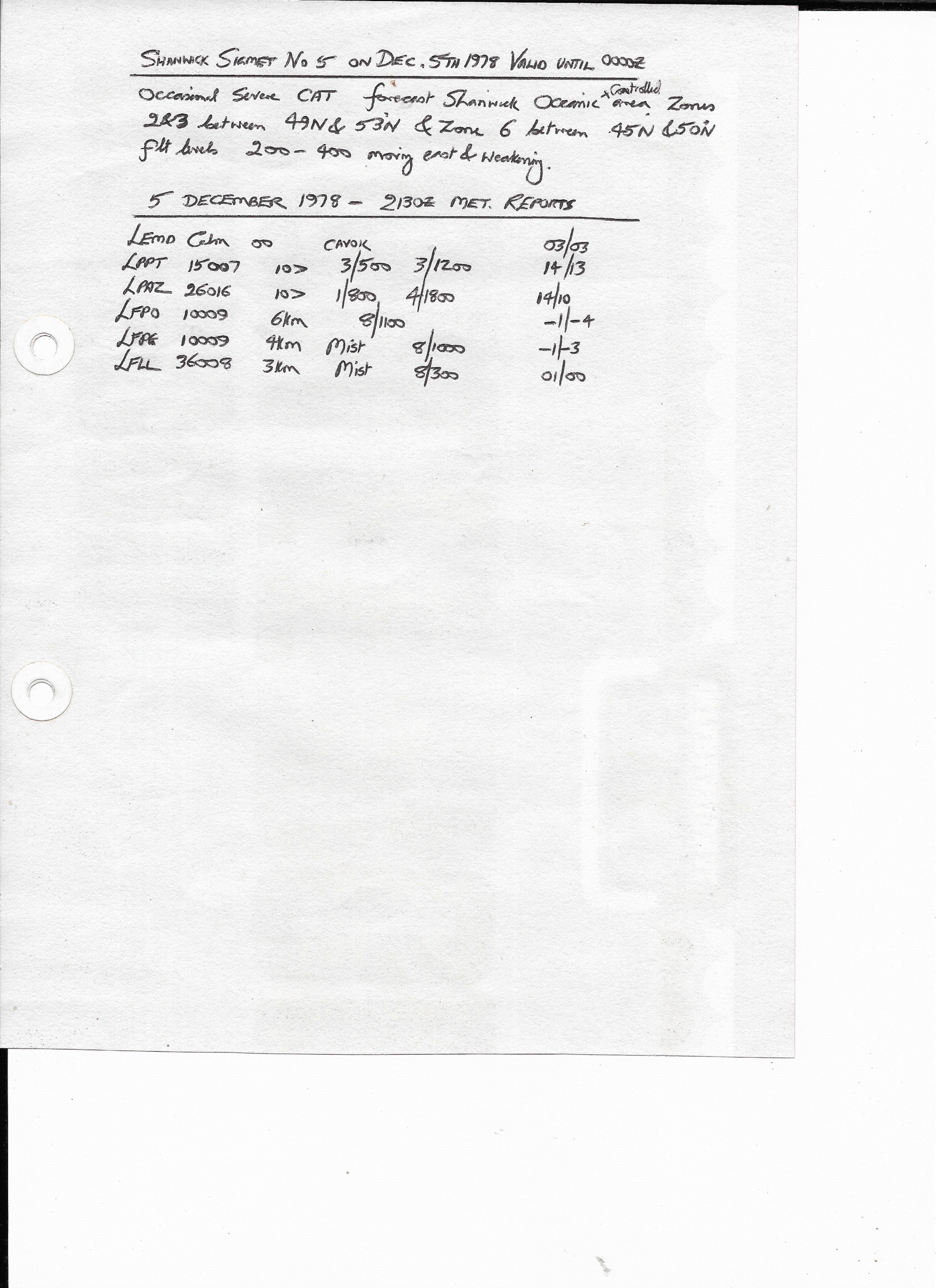 05 December, 1978: 2130Z European METARS