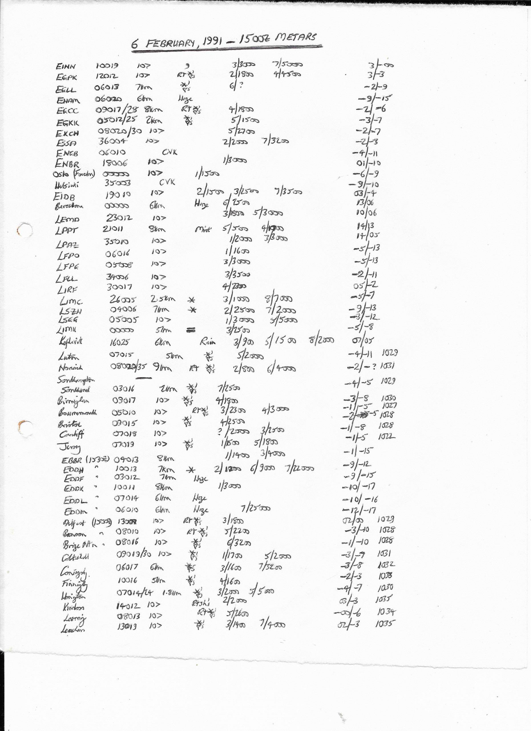 06 February, 1991: 1500Z METARS