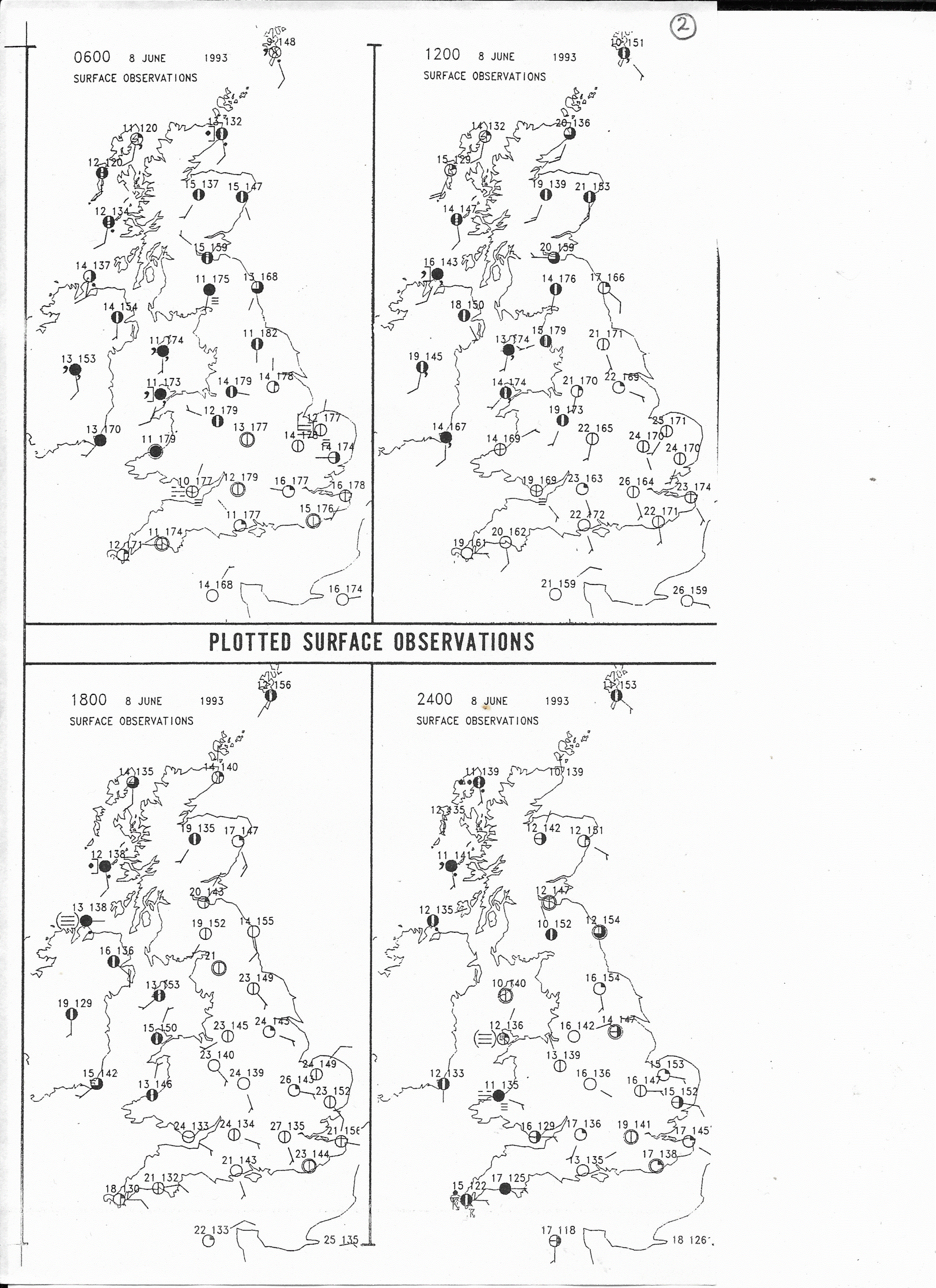 08th June, 1993: Plotted Surface Observations: Page 2: