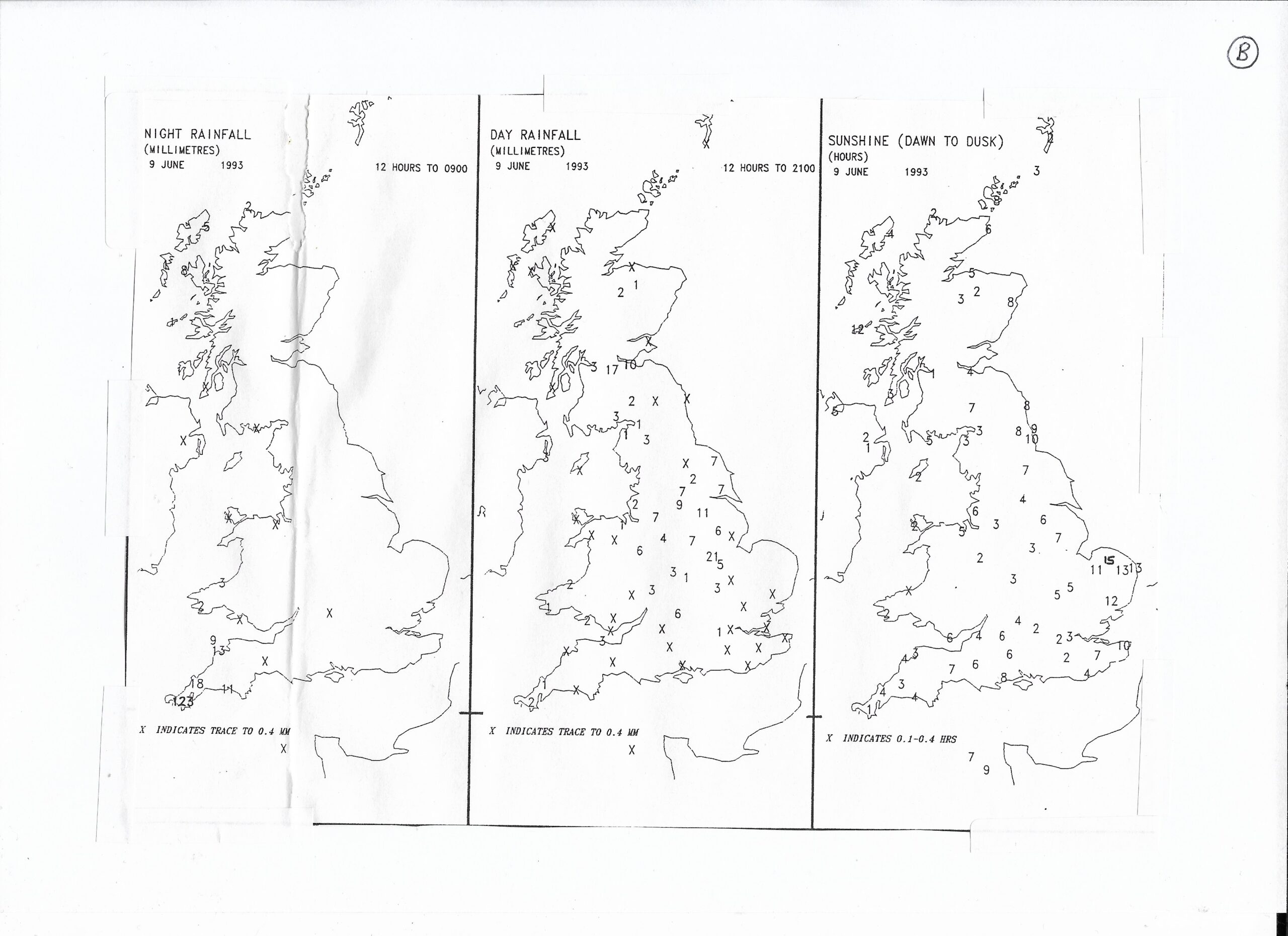 09th June, 1993: Night Rainfall, Day Rainfall & Sunshine: