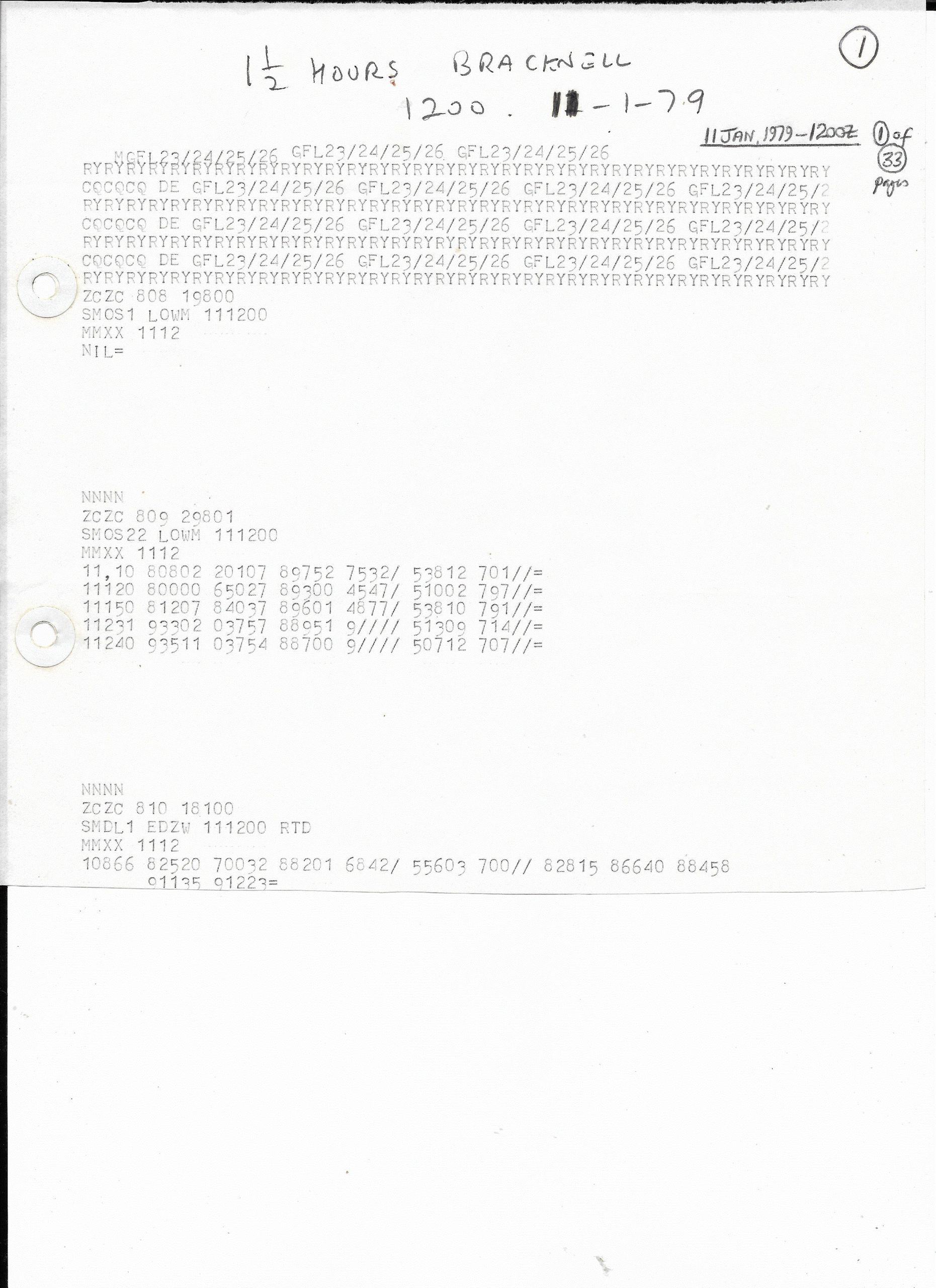 11 January, 1979: 1200Z RTTY EGRR (Page 1)