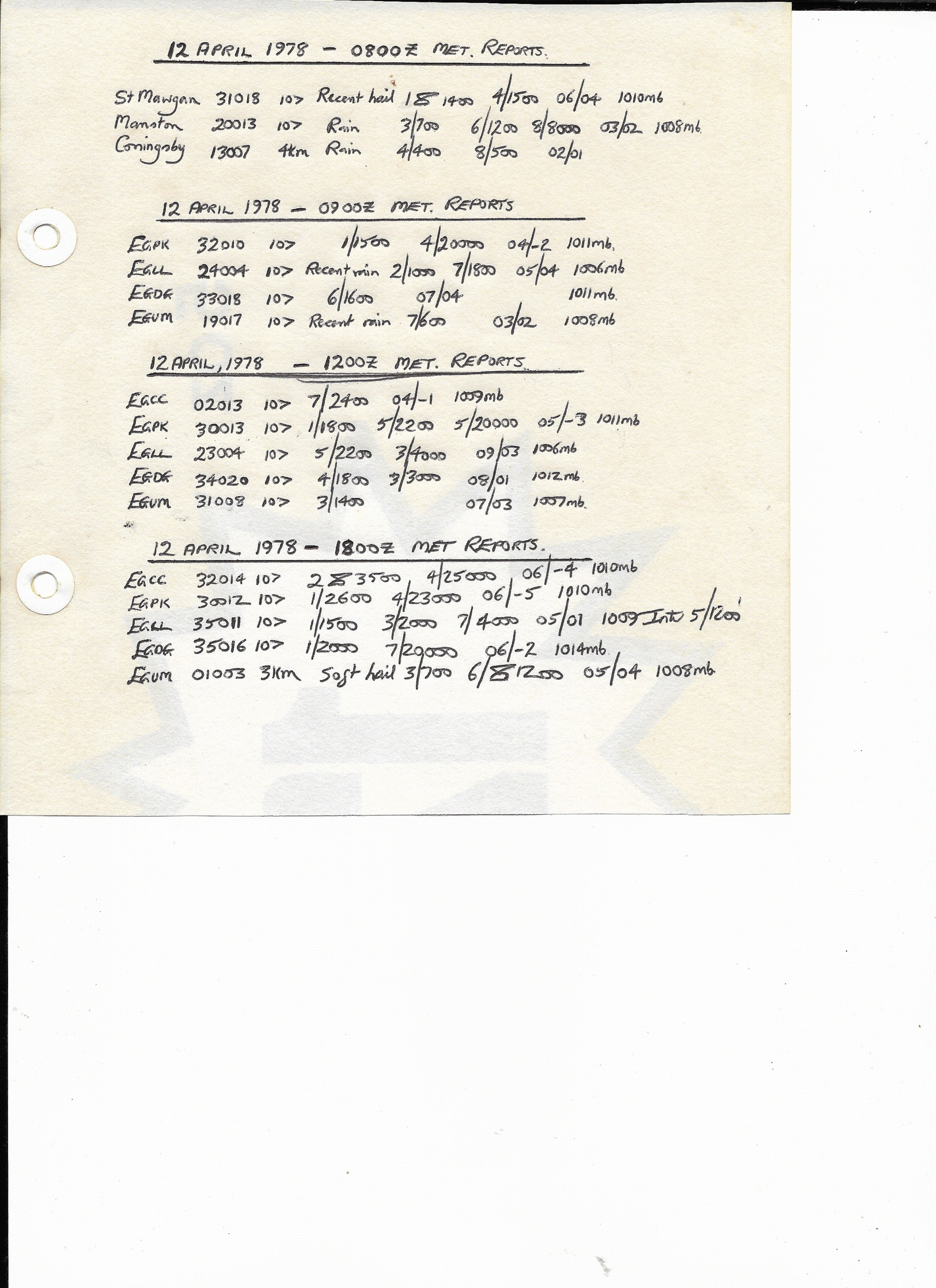 12 April, 1978: U.K. METARS
