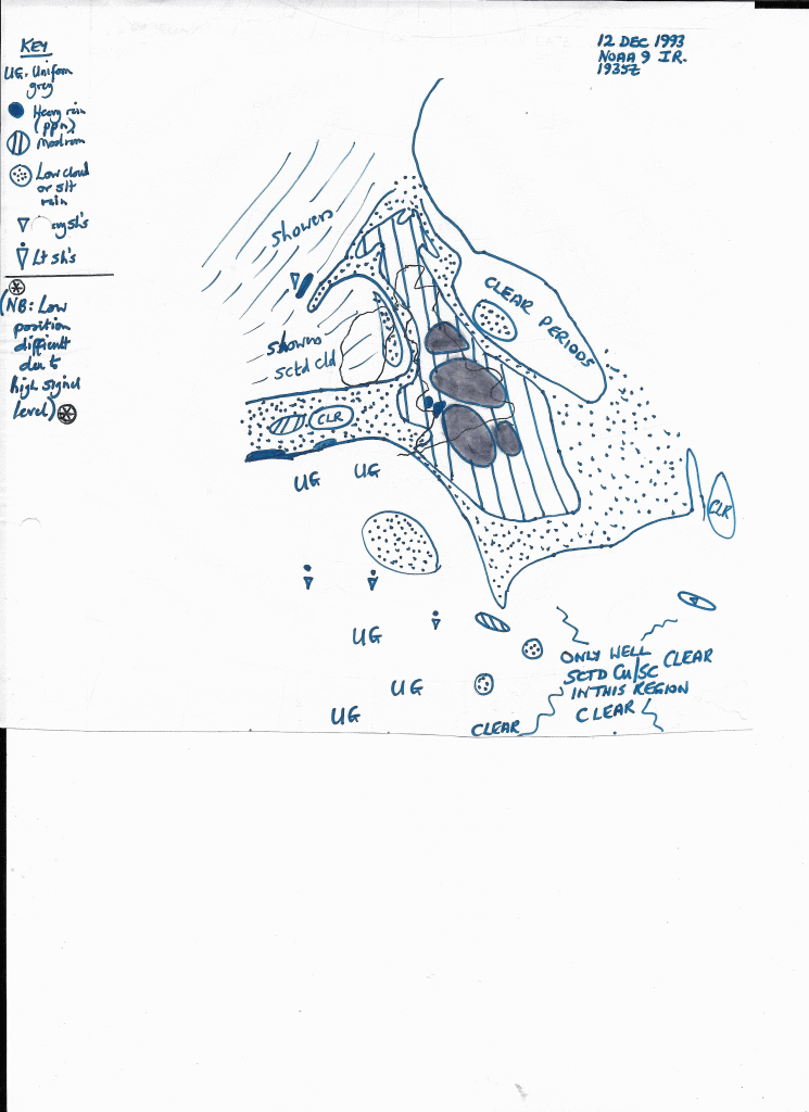 12 December, 1993: 1935Z NOAA 9 I.R. Satellite Cloud Analysis