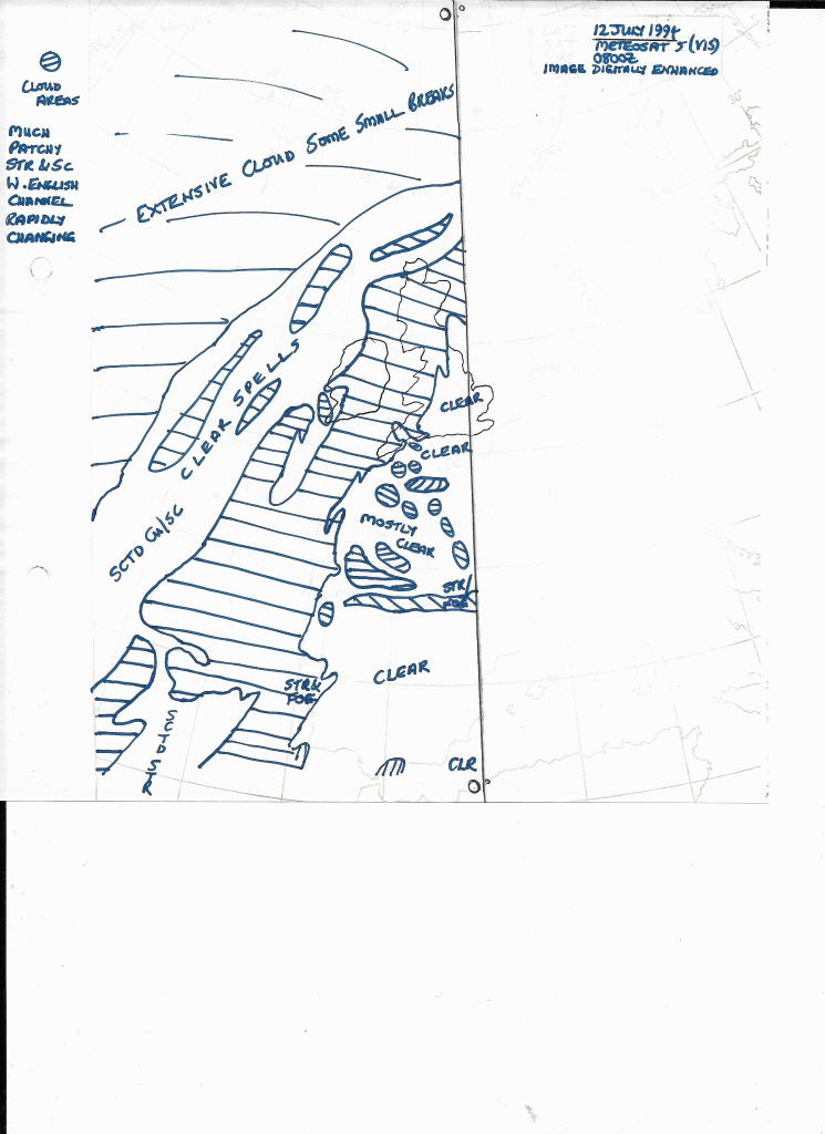 12 July, 1994: 0800Z METEOSAT 5 Vis. Satellite Cloud Analysis