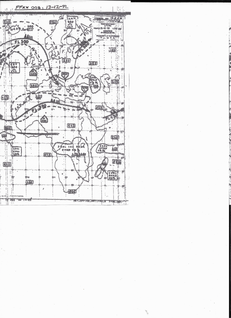 13 December, 1992: 0000Z FSXX Jet Stream & Sig. Wx.
