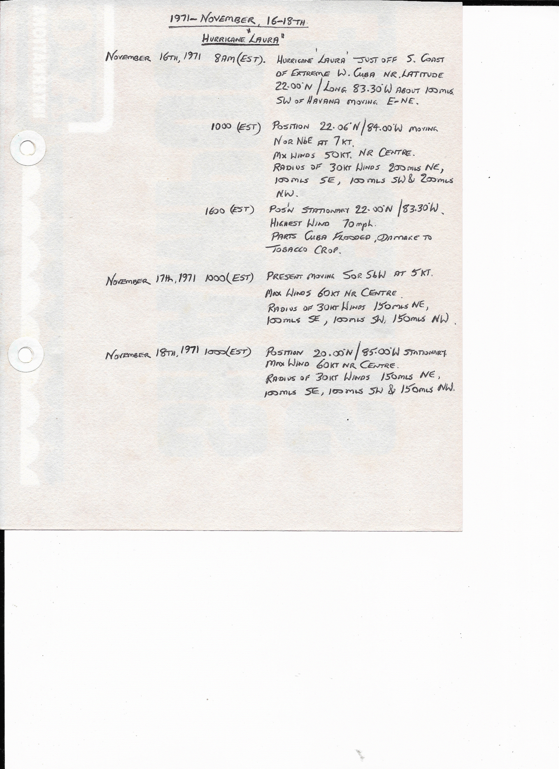 16-18 November, 1971: Hurricane Laura