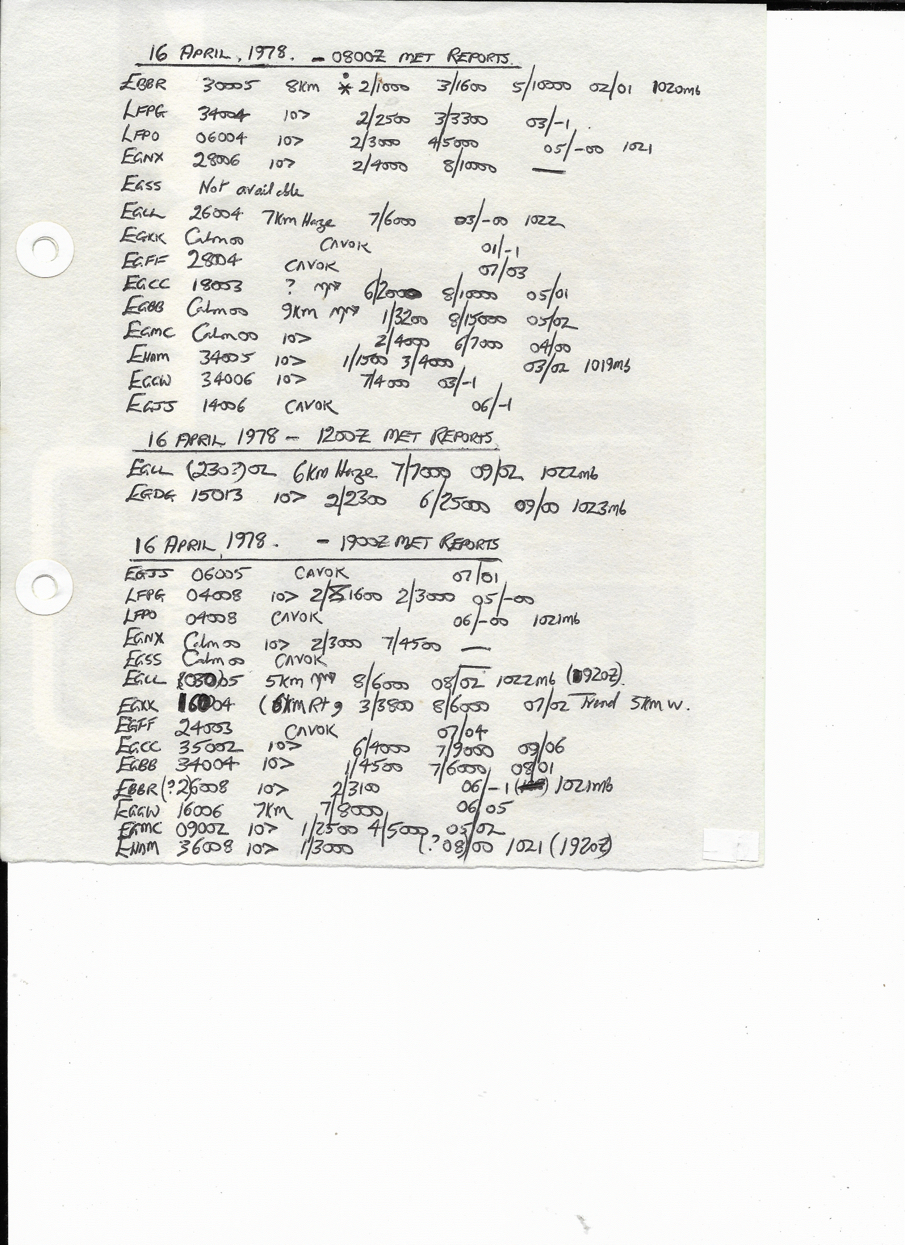 16 April, 1978: European METARS