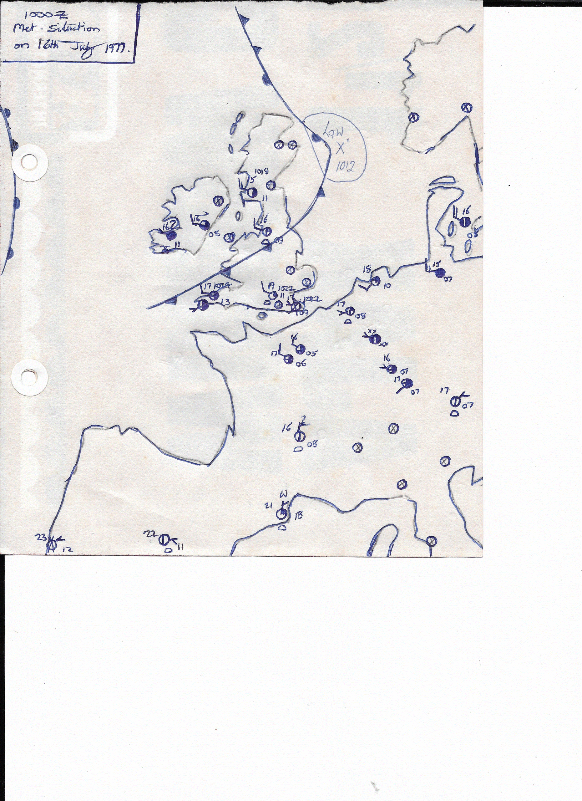 16 July, 1977: 1000Z Plotted Synoptic Chart