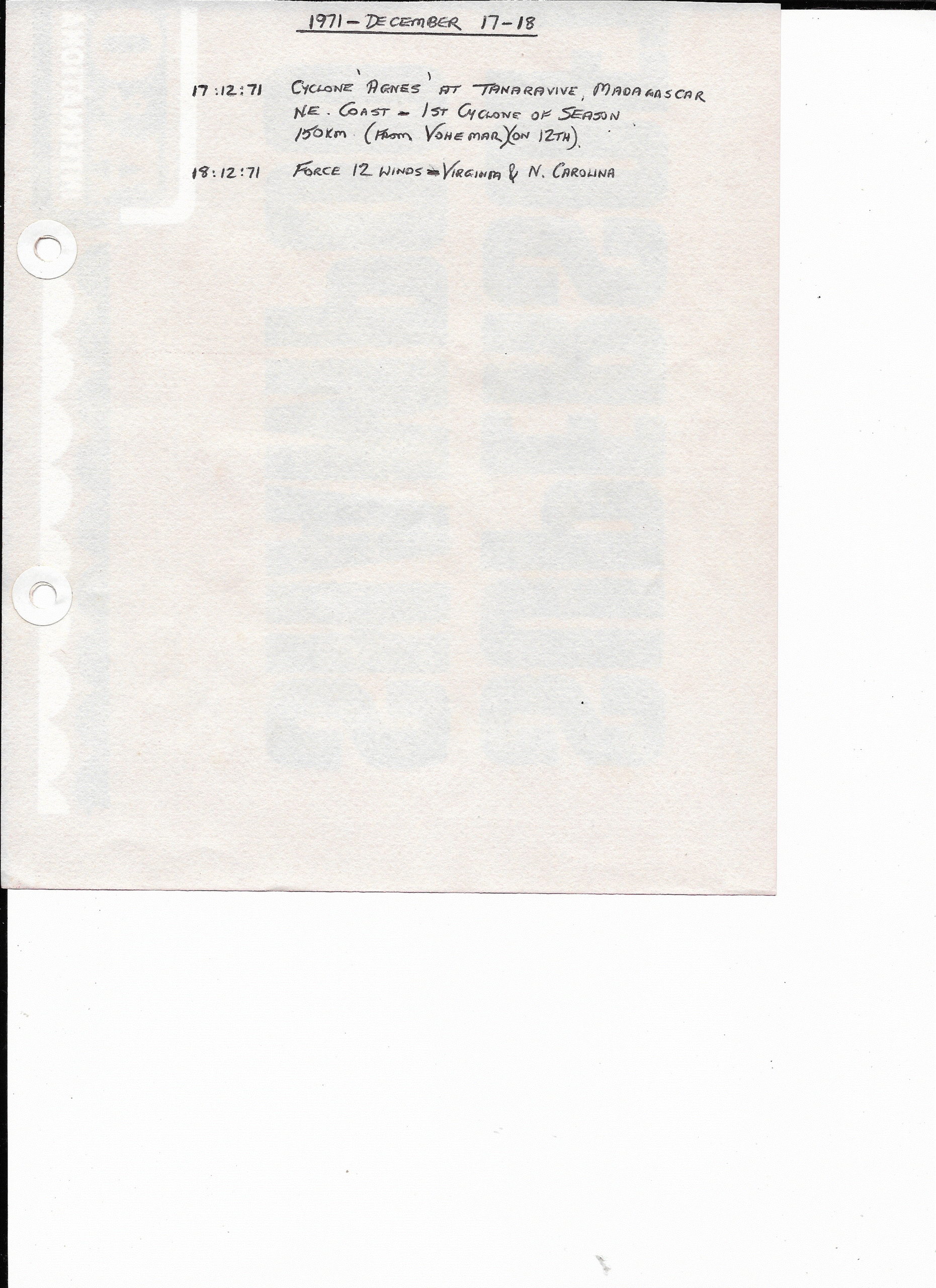 17-18 December, 1971: Madagascar: Cyclone Agnes, Virginia & North Carolina: Hurricane Force Winds