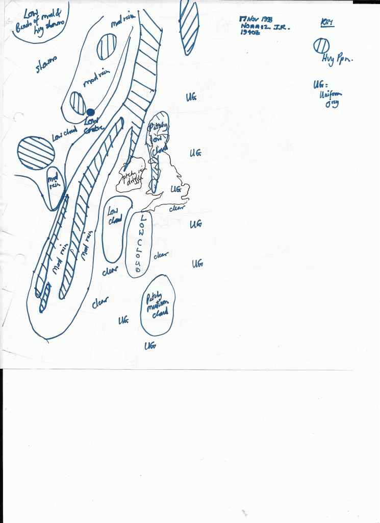 17 November, 1993: 1940Z NOAA 12 I.R. Satellite Cloud Analysis