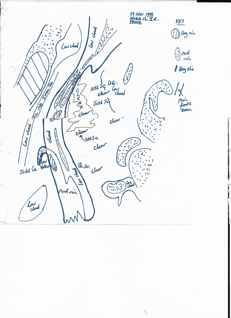 19 November, 1993: 1900Z NOAA 12 I.R. Satellite Cloud Analysis