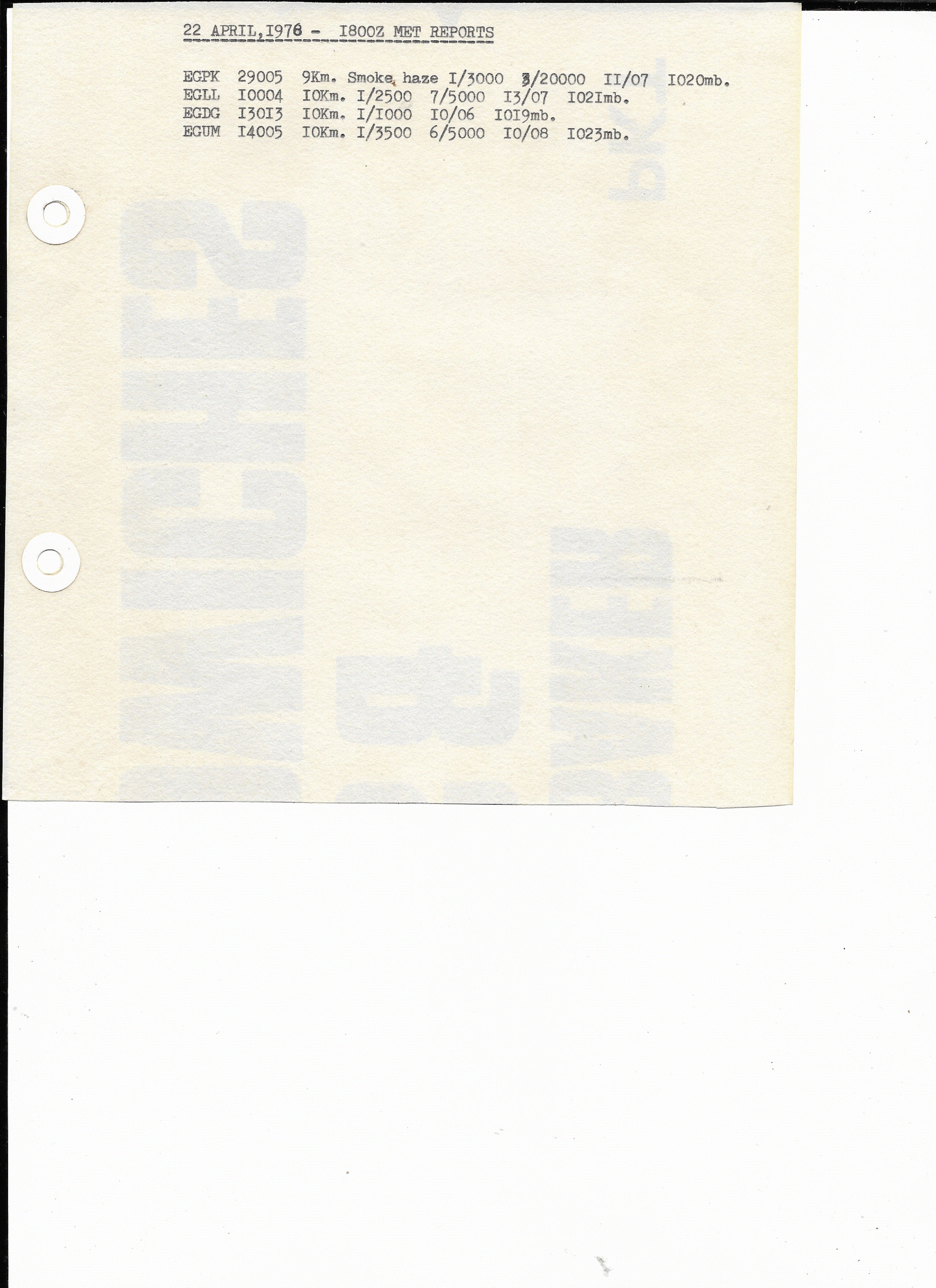 22 April, 1978: 1800Z European METARS