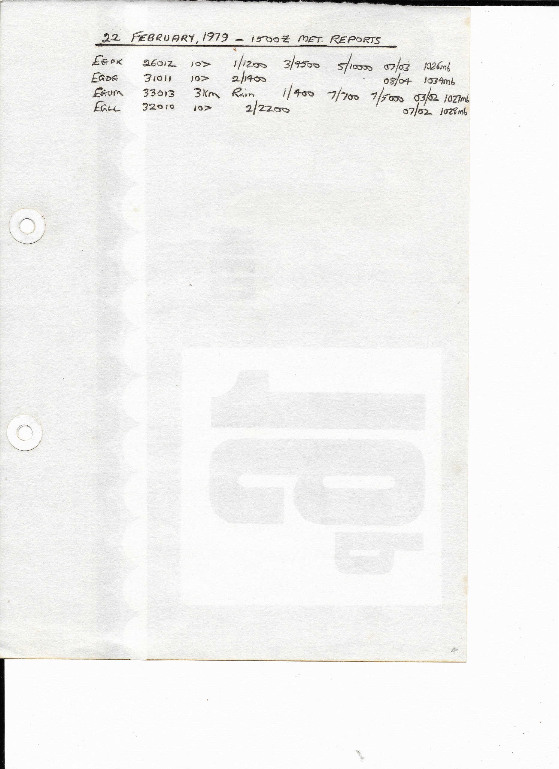 22 February, 1979: 1500Z U.K. METARS