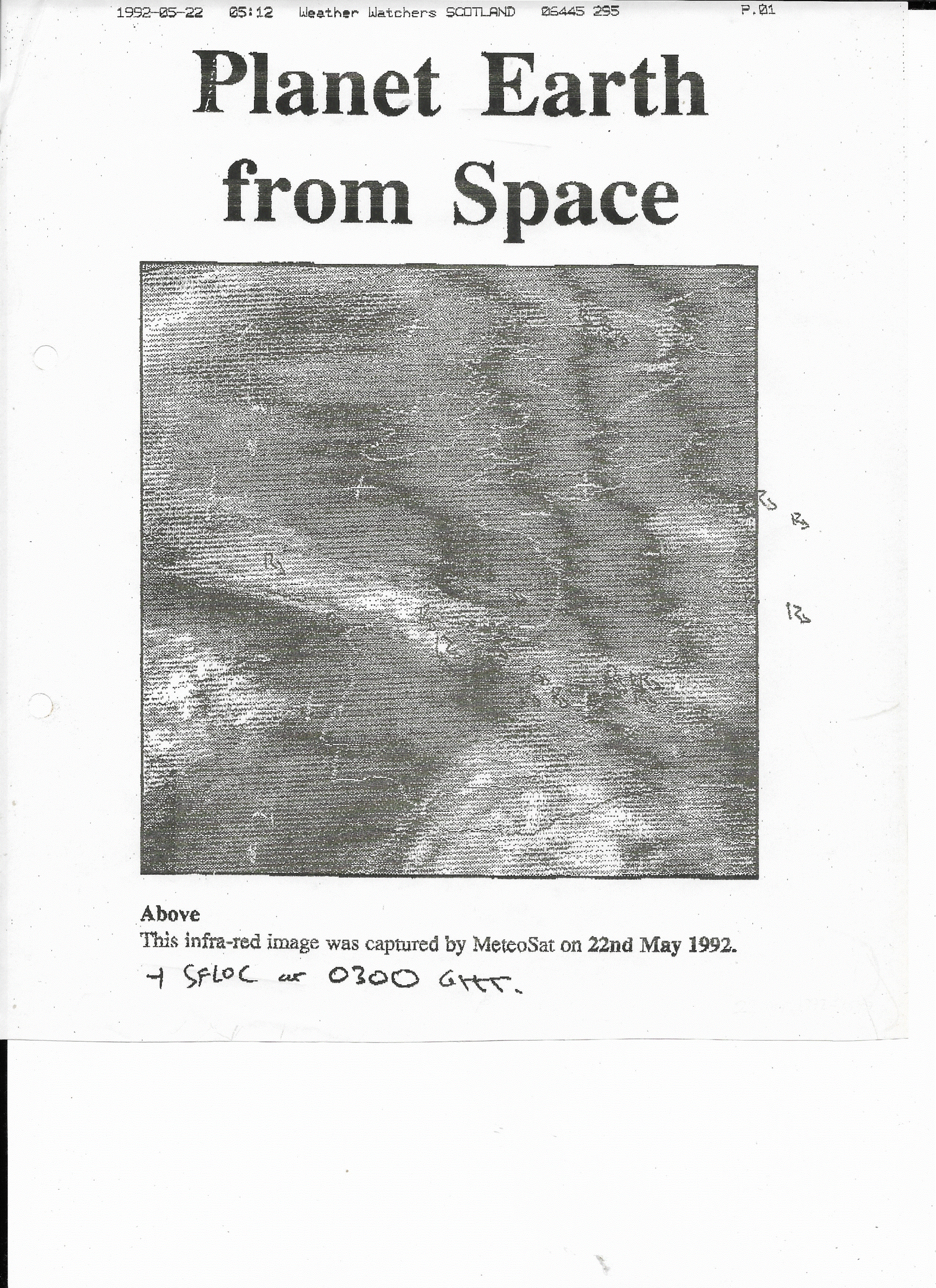 22 May, 1992: 0300Z Meteosat I.R. Satellite Image