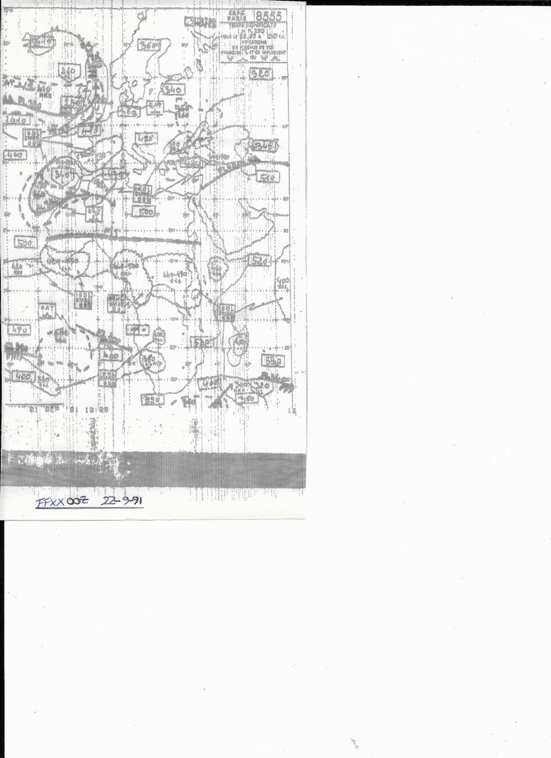 22 September, 1991: 0000Z FSXX Jet Stream & Sig. Wx. Chart (Paris)