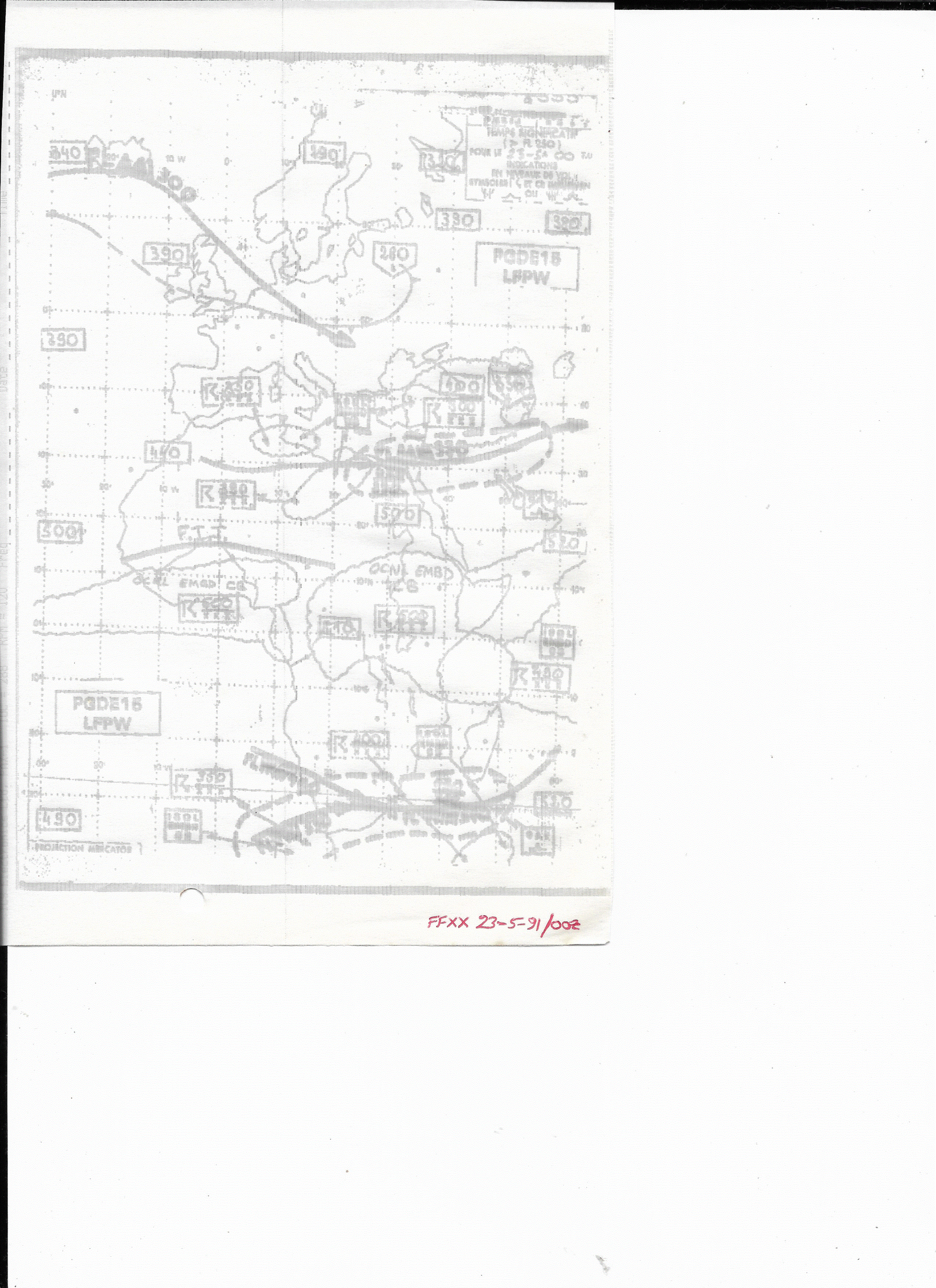 23 May, 1991: 0600Z FSXX Jet Stream & Sig. Wx. Chart (Paris)