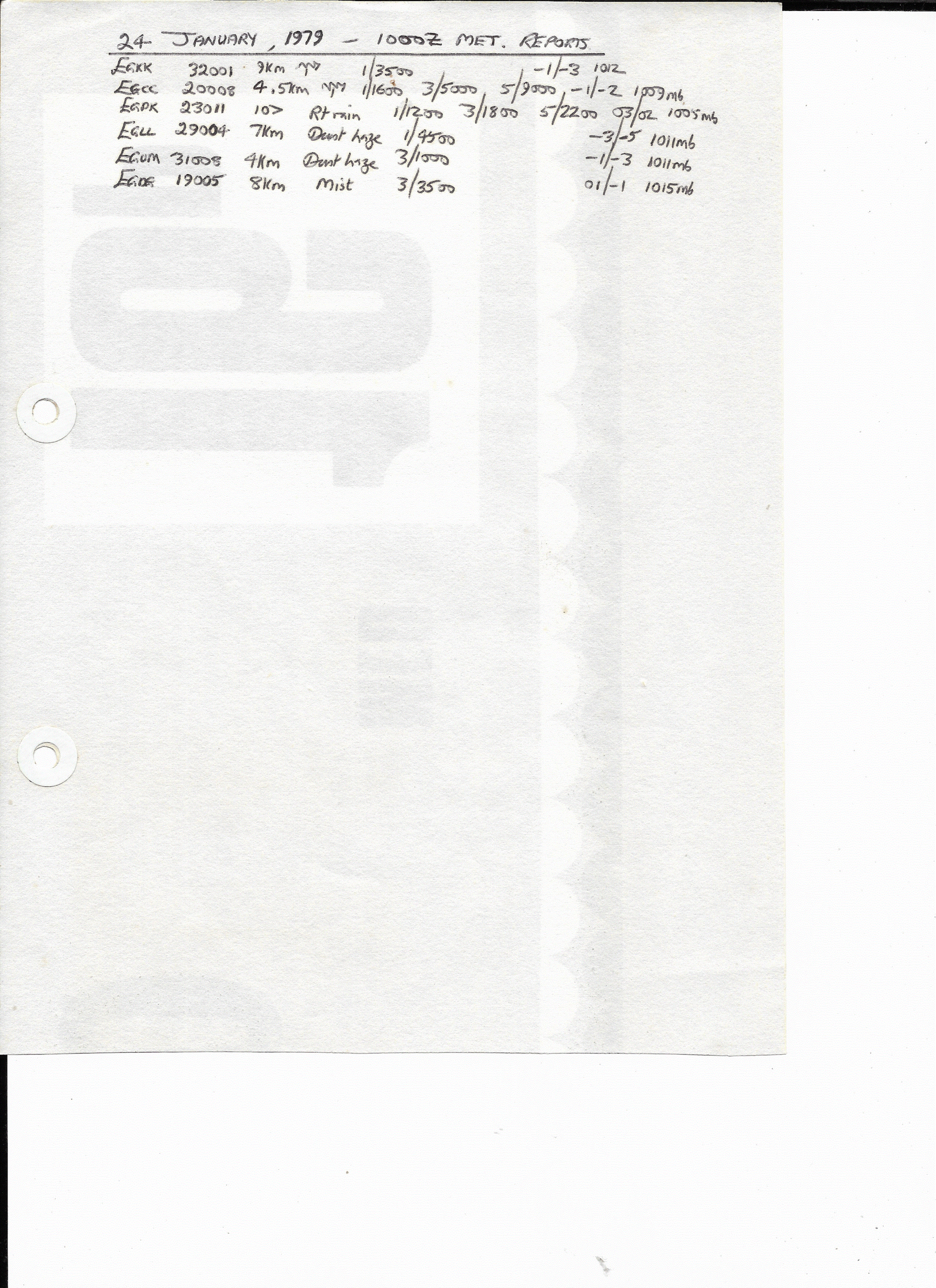 24 January, 1979: 1000Z U.K. METARS
