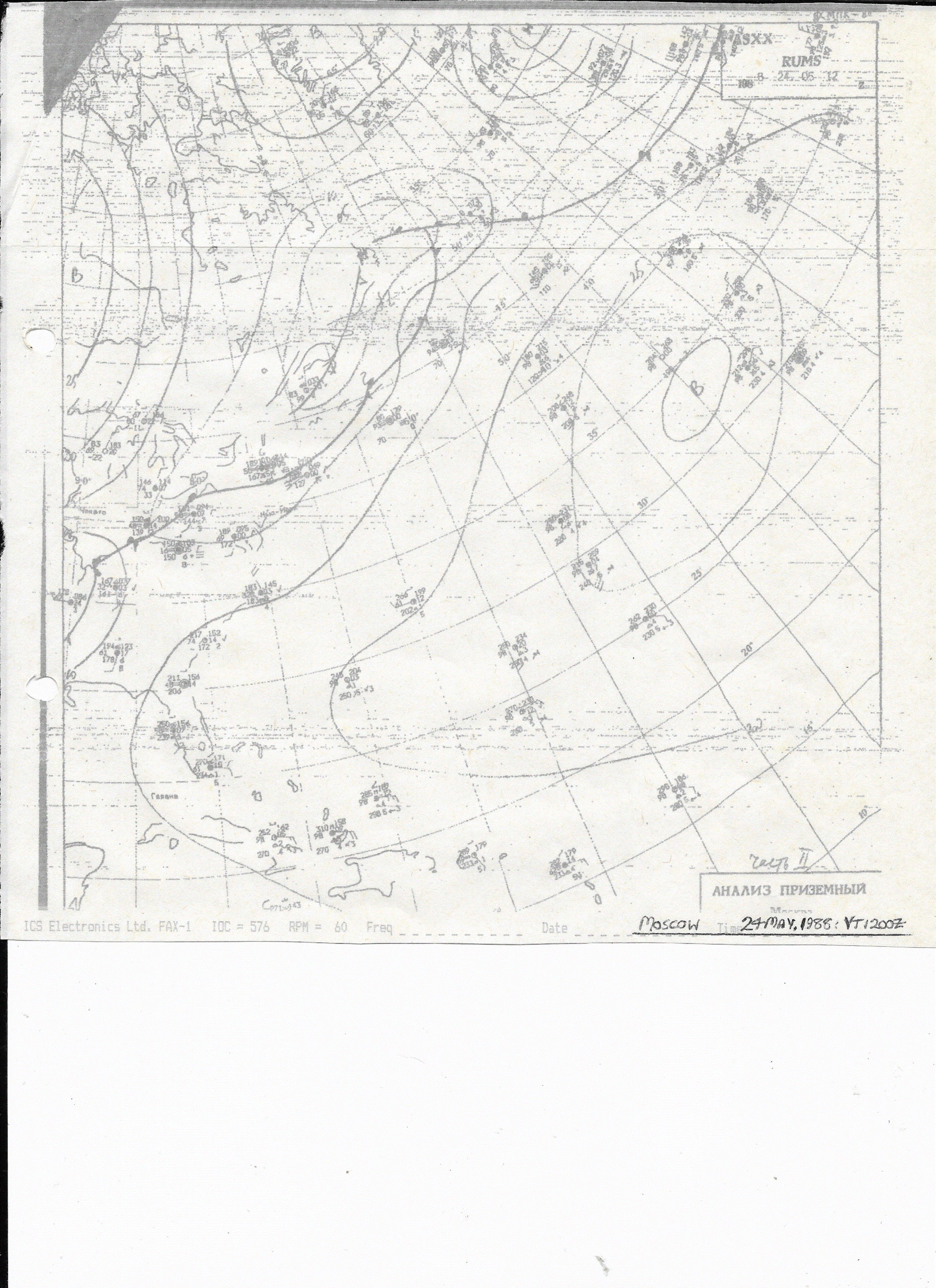 24 May, 1988: VT 1200Z Plotted Synoptic Chart (Moscow):