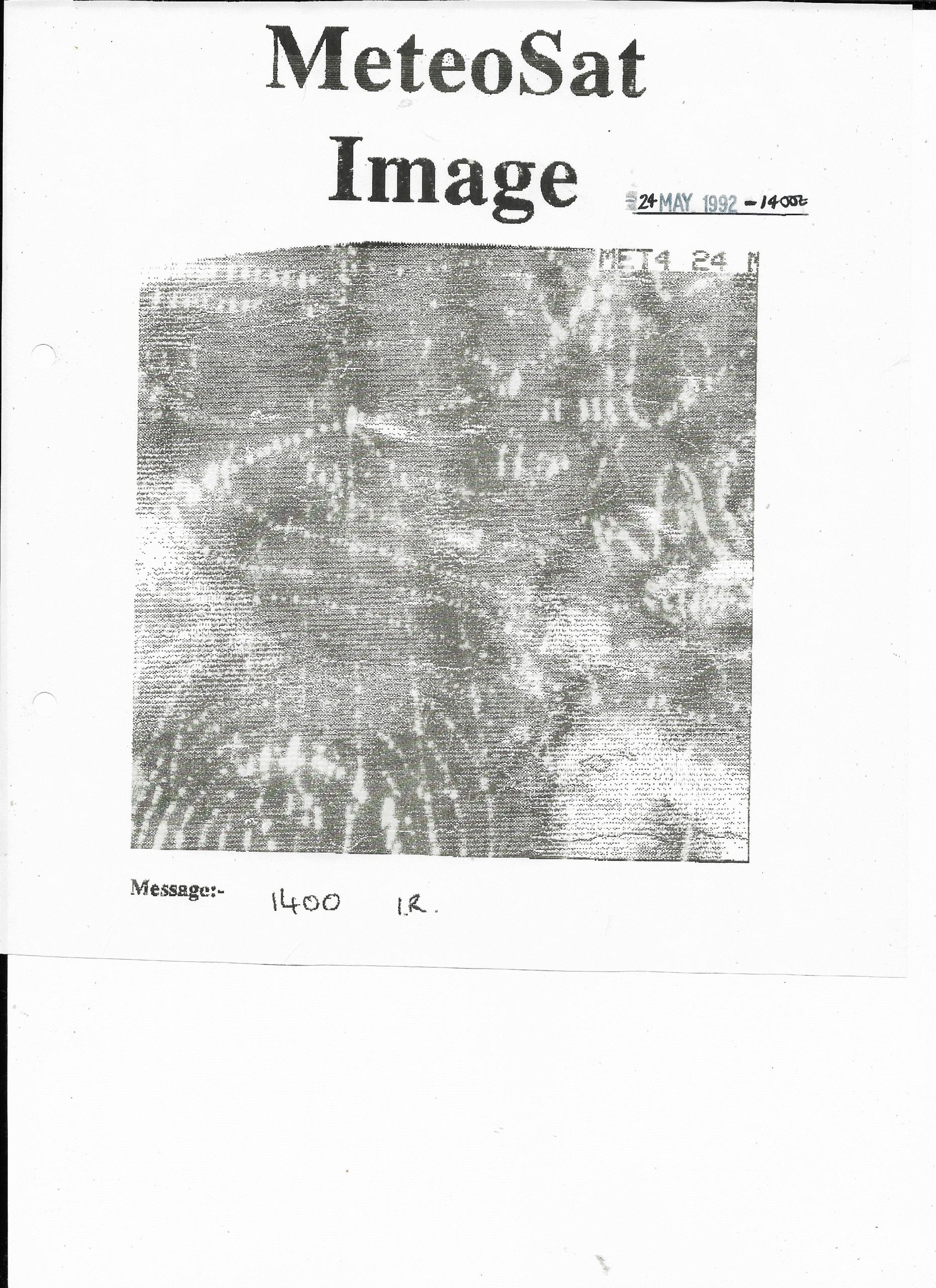 24 May, 1992: 1400Z Meteosat I.R. Satellite Image