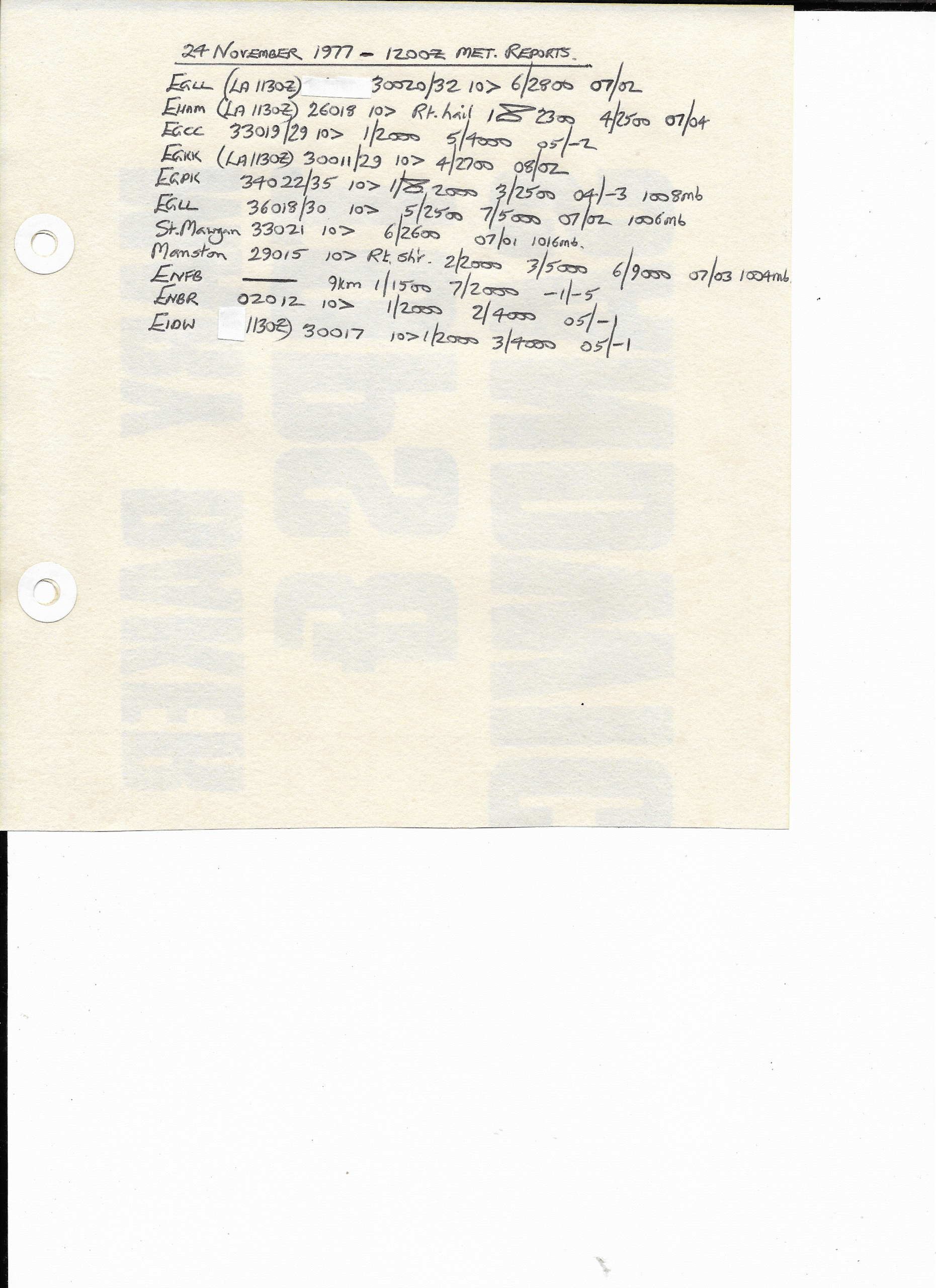 24 November, 1977: 1200Z European METARS