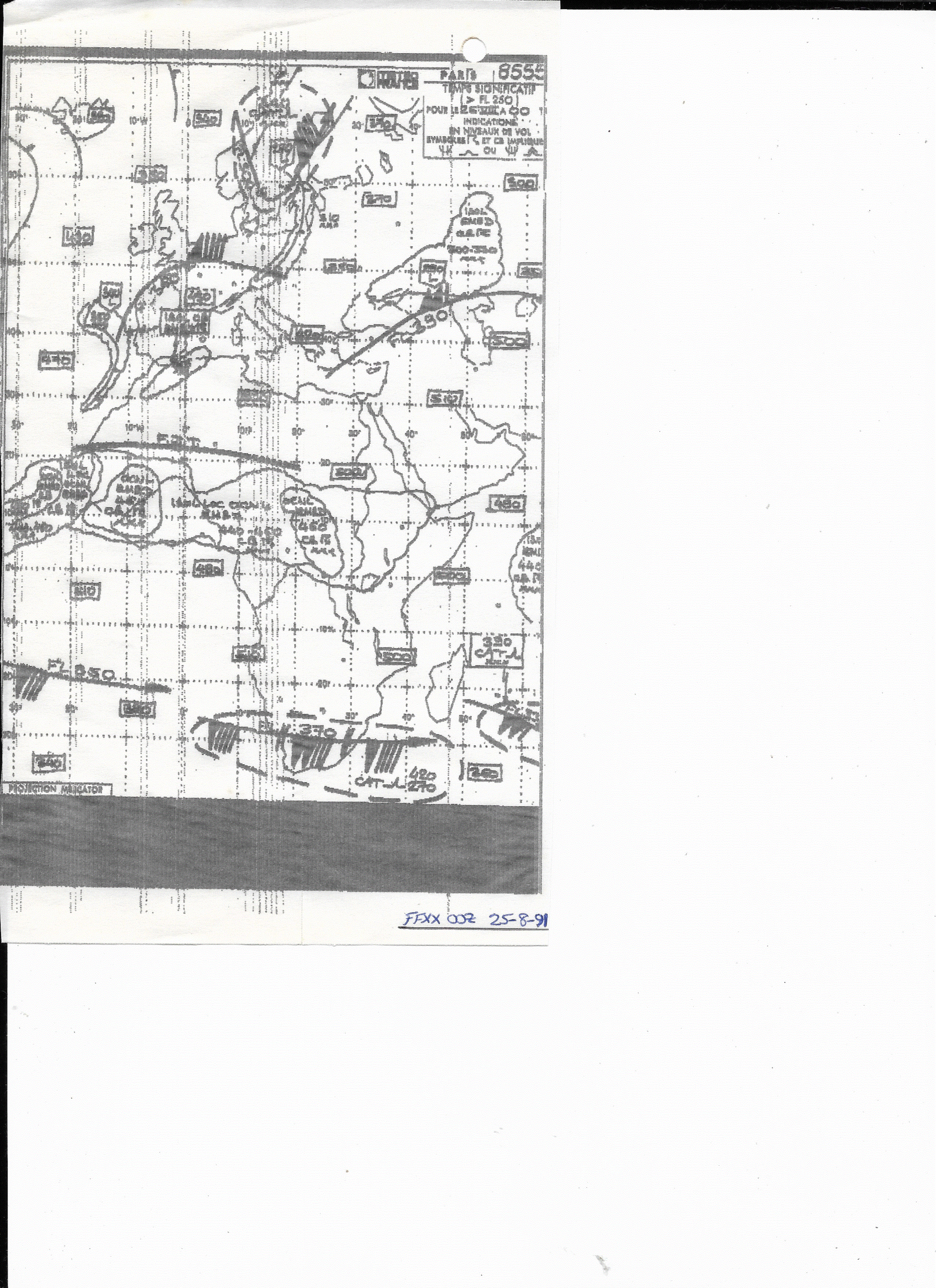 25 August, 1991: 0000Z FSXX Jet Stream & Sig. Wx. (Paris)