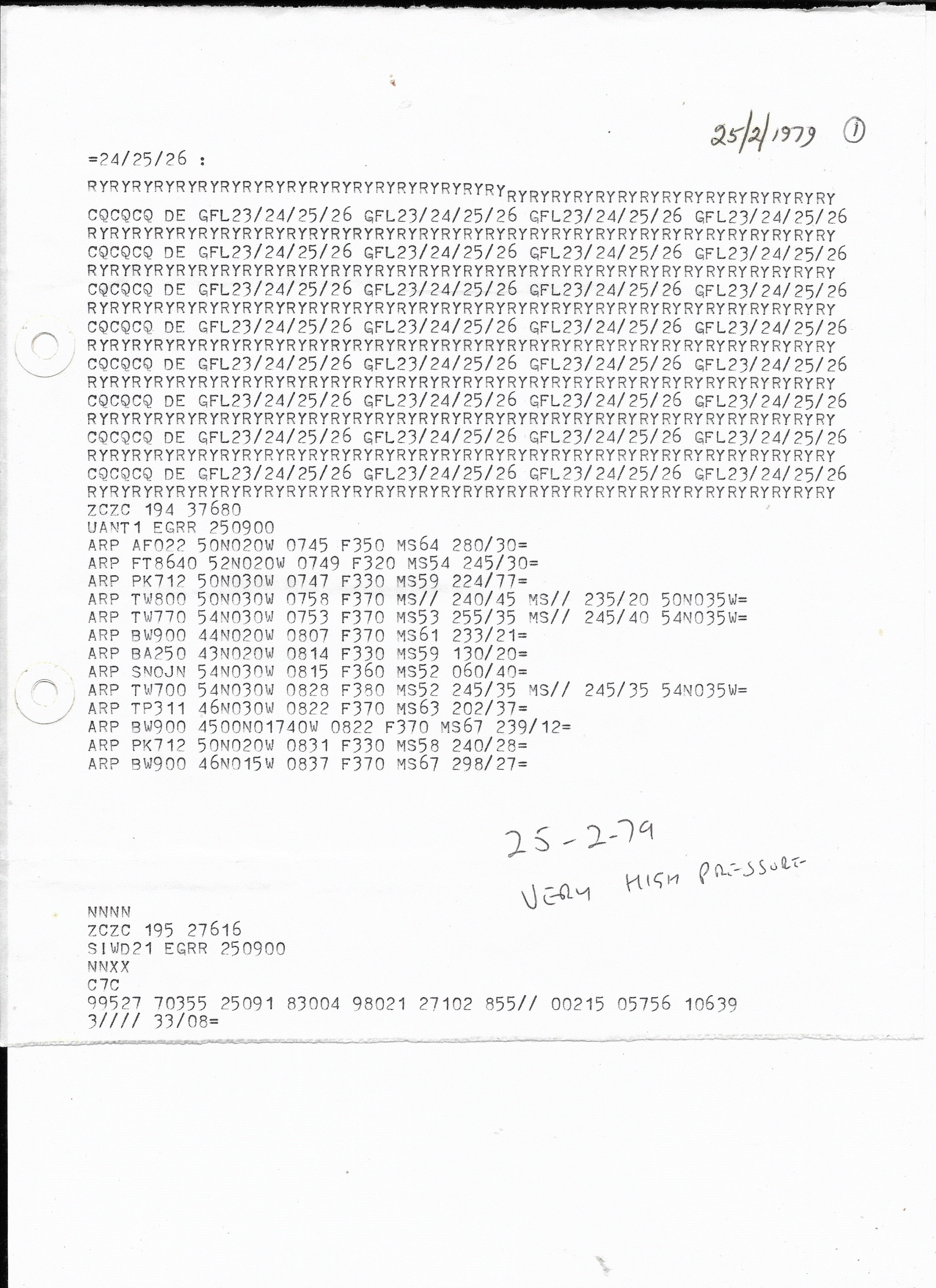25 February, 1979: 0900Z RTTY EGRR (Page 1)