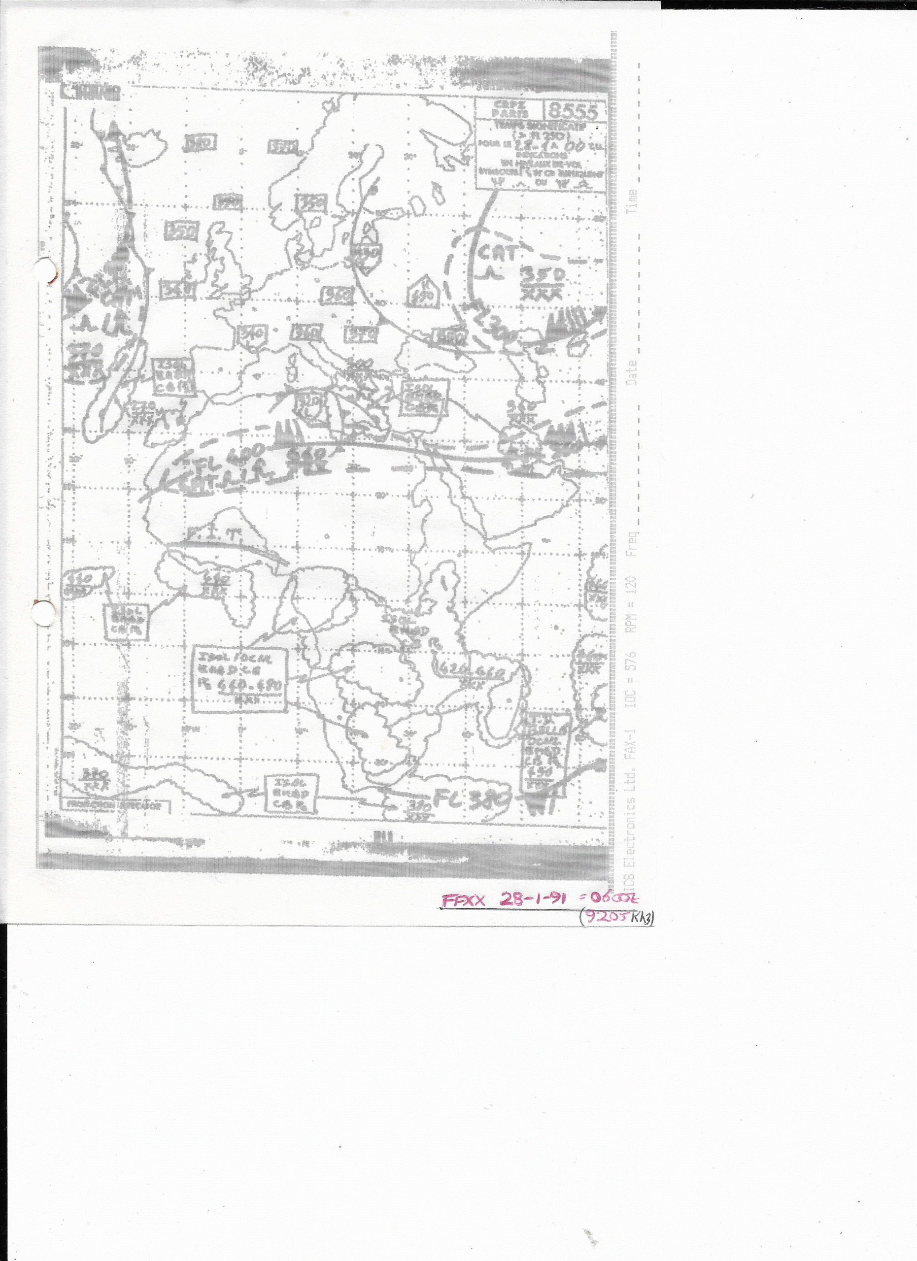 28 January, 1991: 0600Z FSXX Jet Stream & Sig. Wx. (Paris)