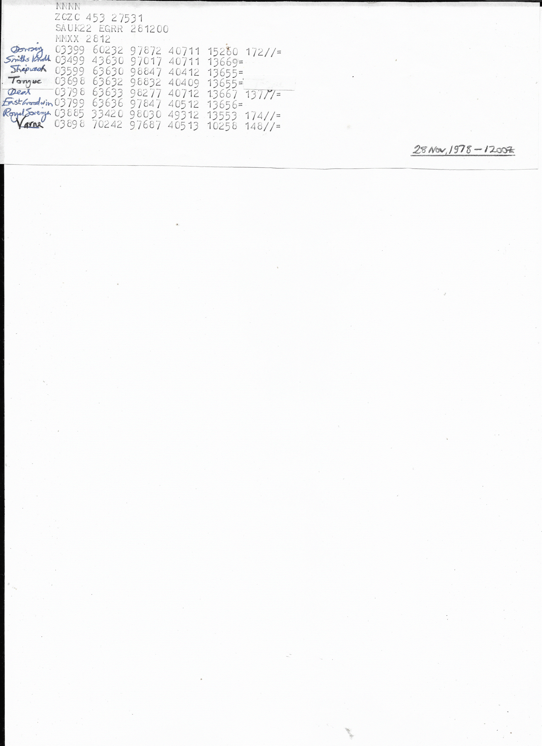 28 November, 1978: 1200Z RTTY EGRR: Lightships