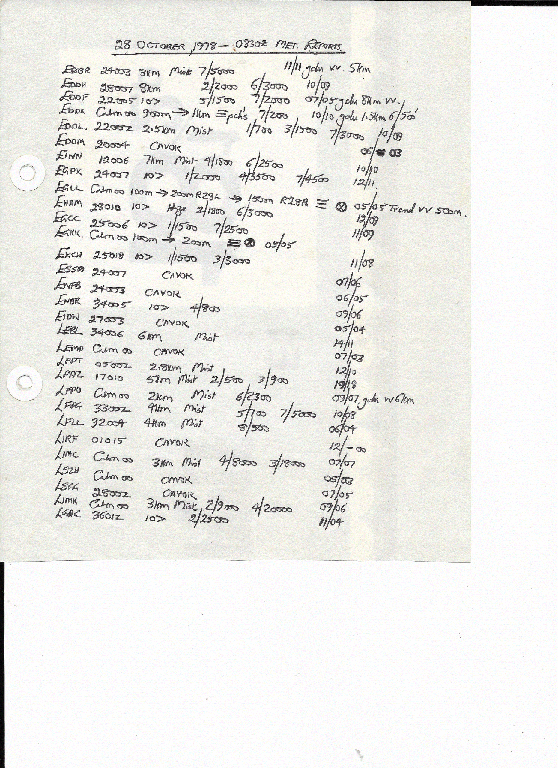 28 October, 1978: 0830Z European METARS