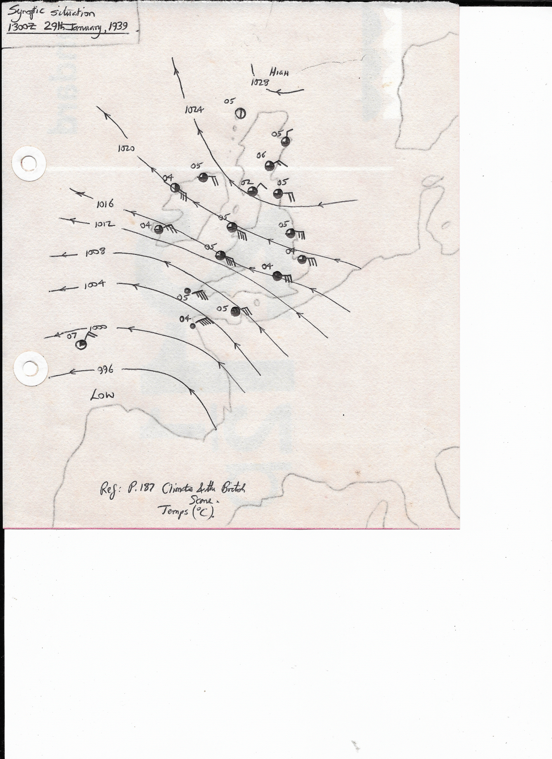 29 January, 1939: 1300Z Synoptic Situation