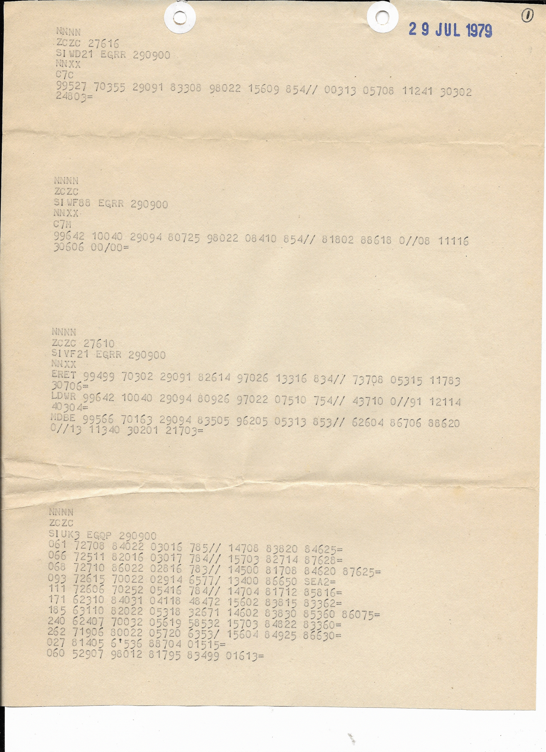 29 July, 1979: 0900Z RTTY: EGRR & EGQP (Page 1):