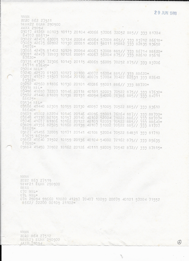 29 June, 1988: 0900Z RTTY EGRR (2)
