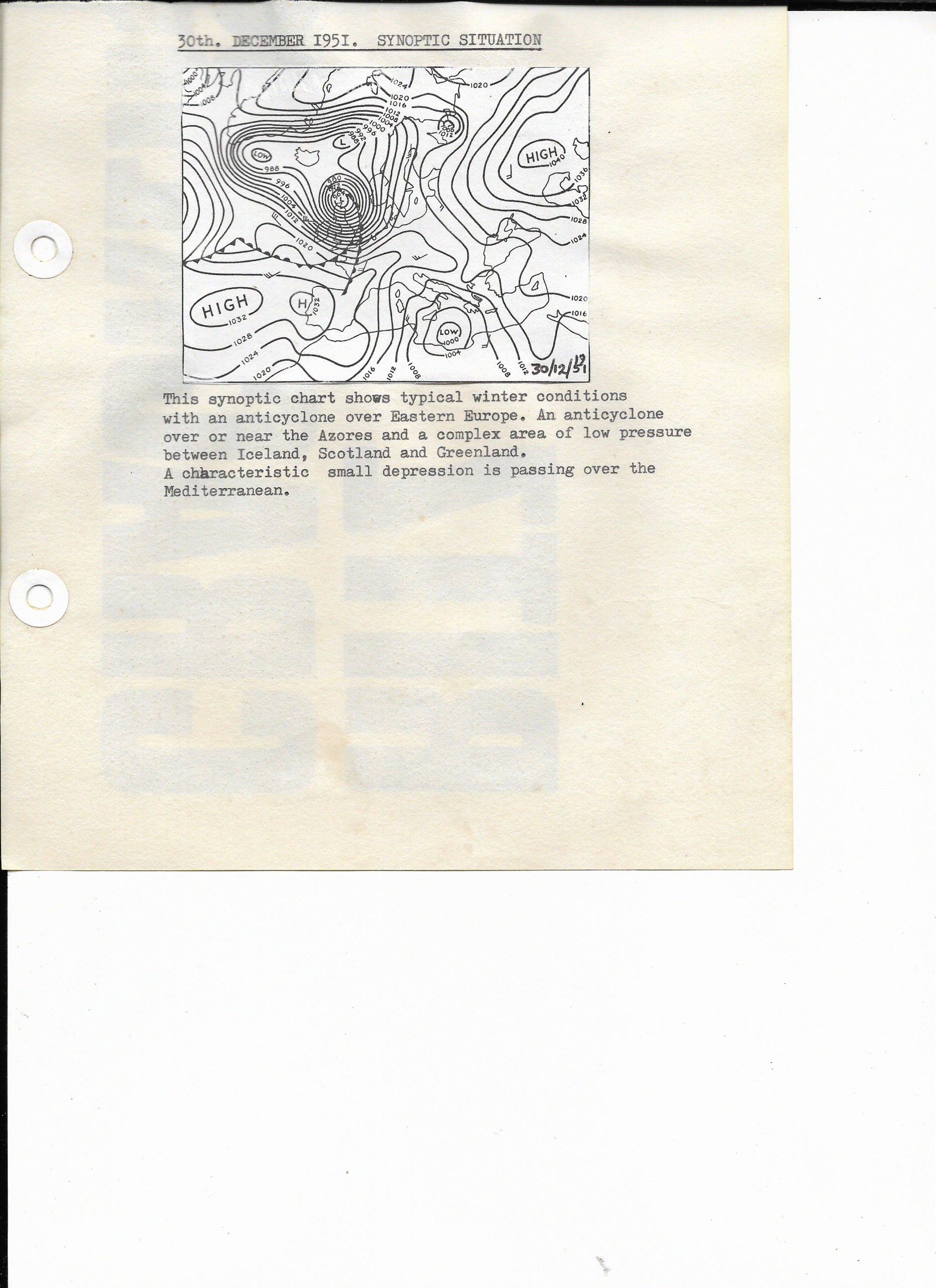 30 December, 1951: Synoptic Situation