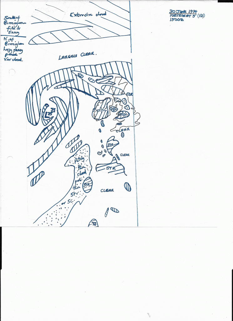30 June, 1994: 1500Z METEOSAT 5 Vis. Satellite Cloud Analysis
