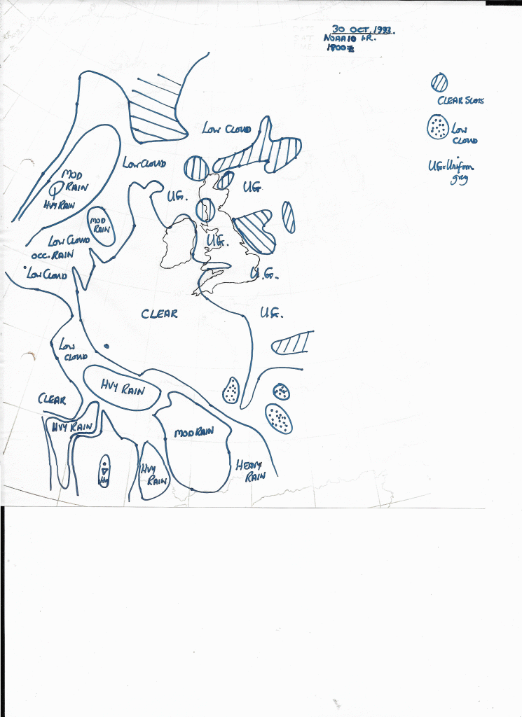 30 October, 1993: 1800Z NOAA 10 I.R. Satellite Cloud Analysis