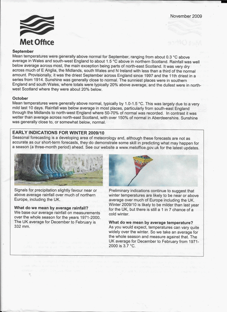 A look back over 2009 – September to October (+ Early Indications for Winter 2009/10)