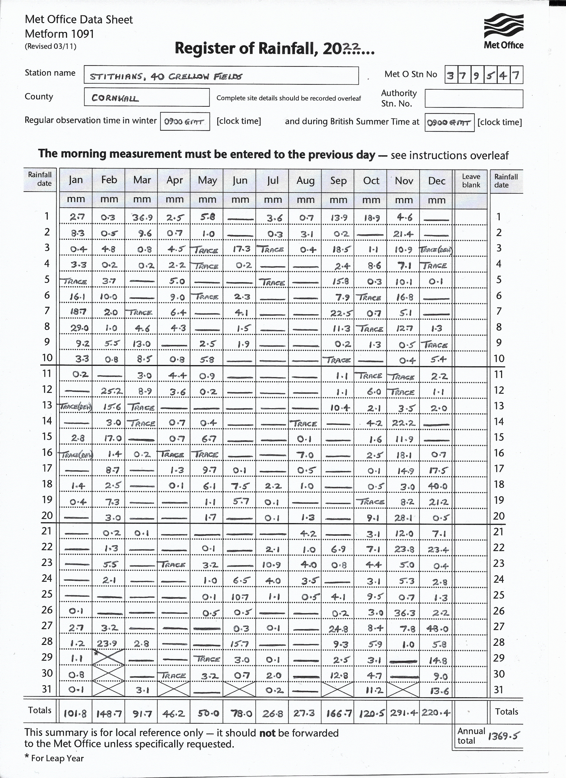 Annual Rainfall 2022