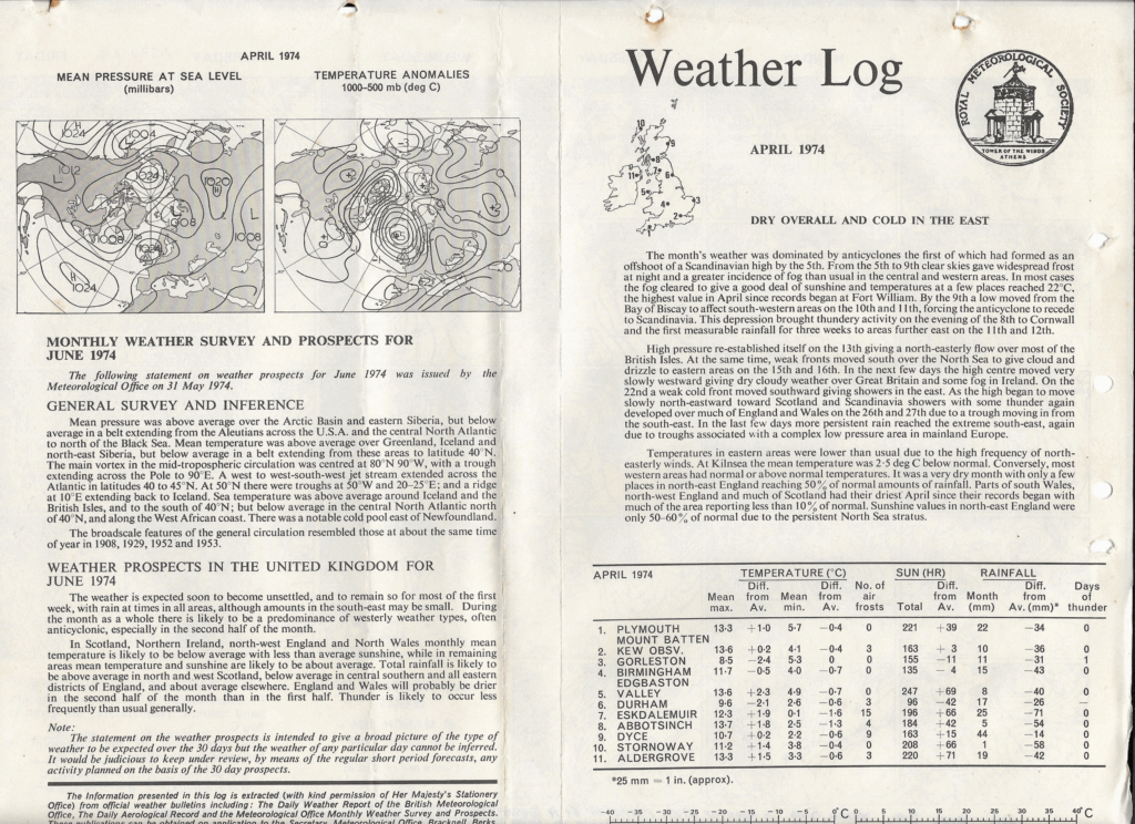 April 1974: Weather Log Monthly Summary & Prospects