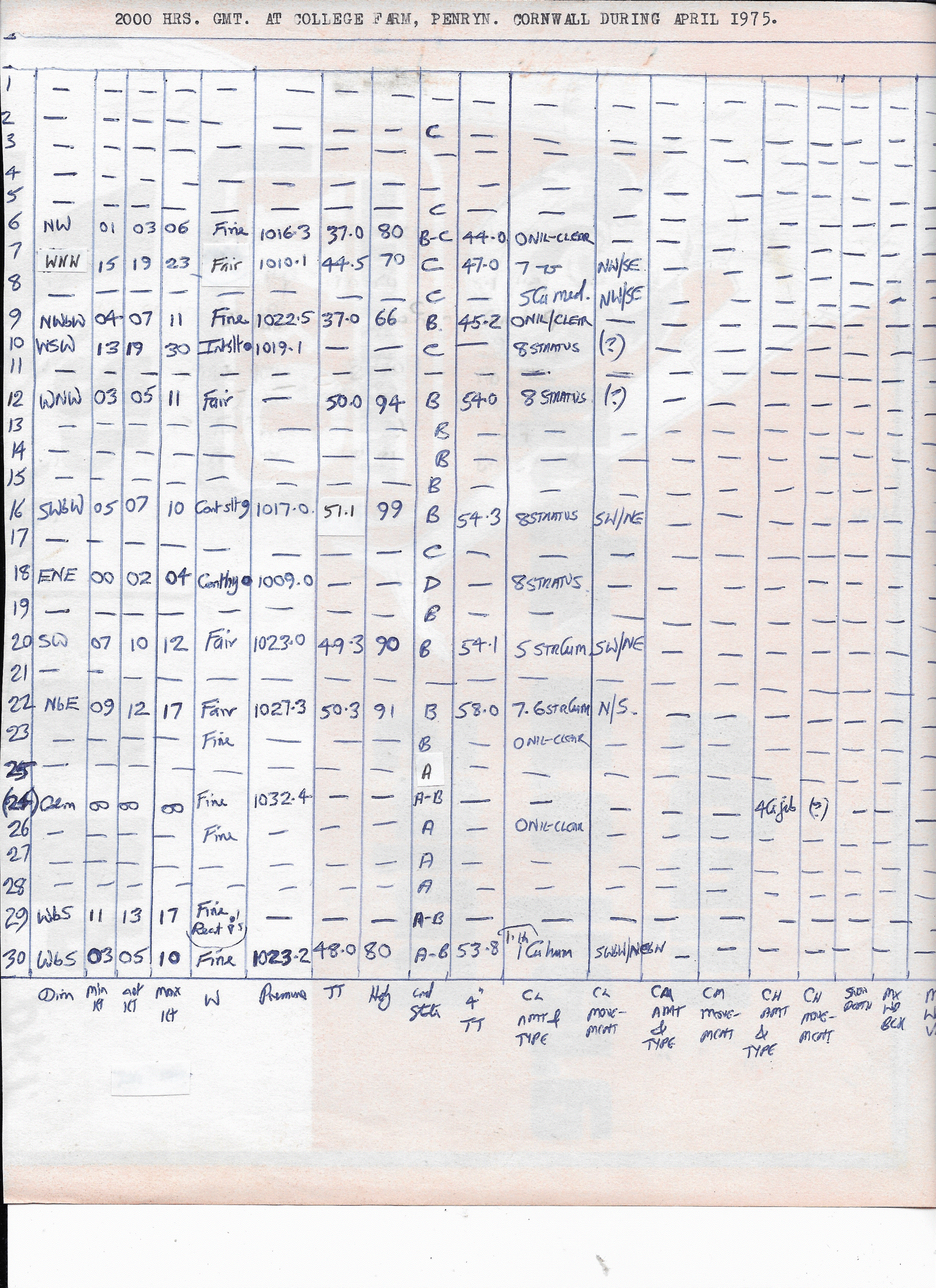 April 1975: 2000Z Obs