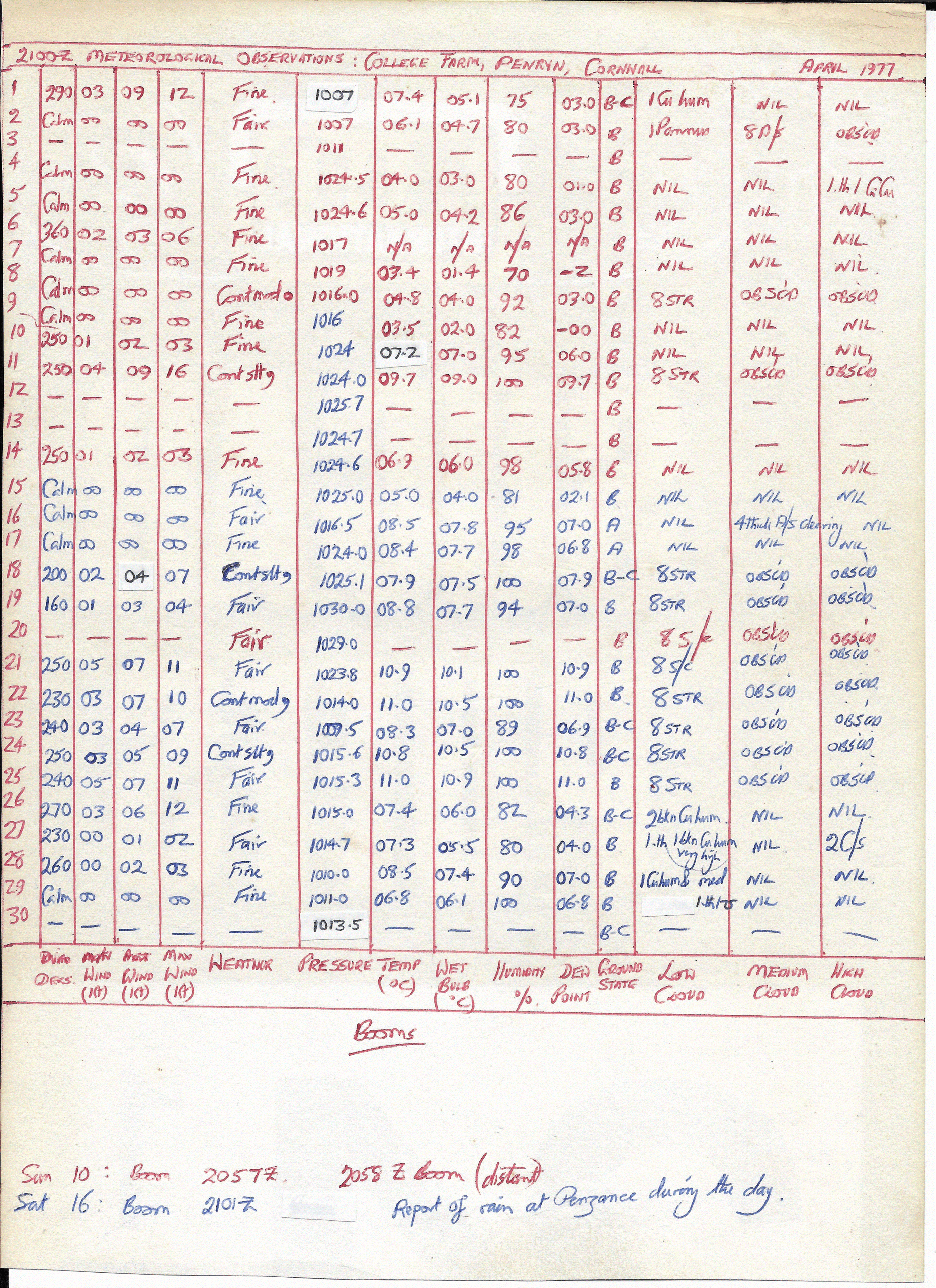 April 1977: 2100Z Obs