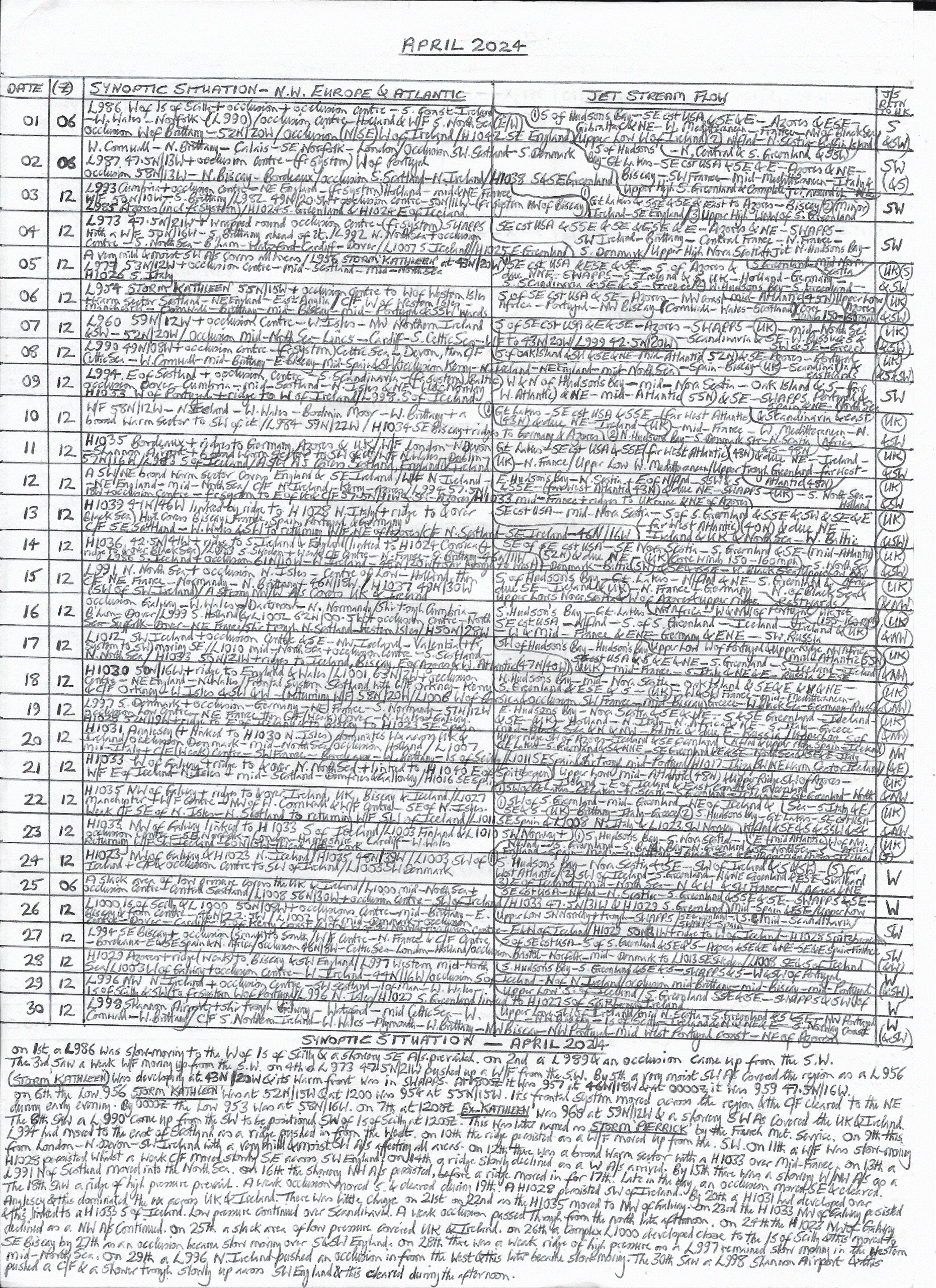 April 2024: Synoptic Situation & Jet Stream Flow: