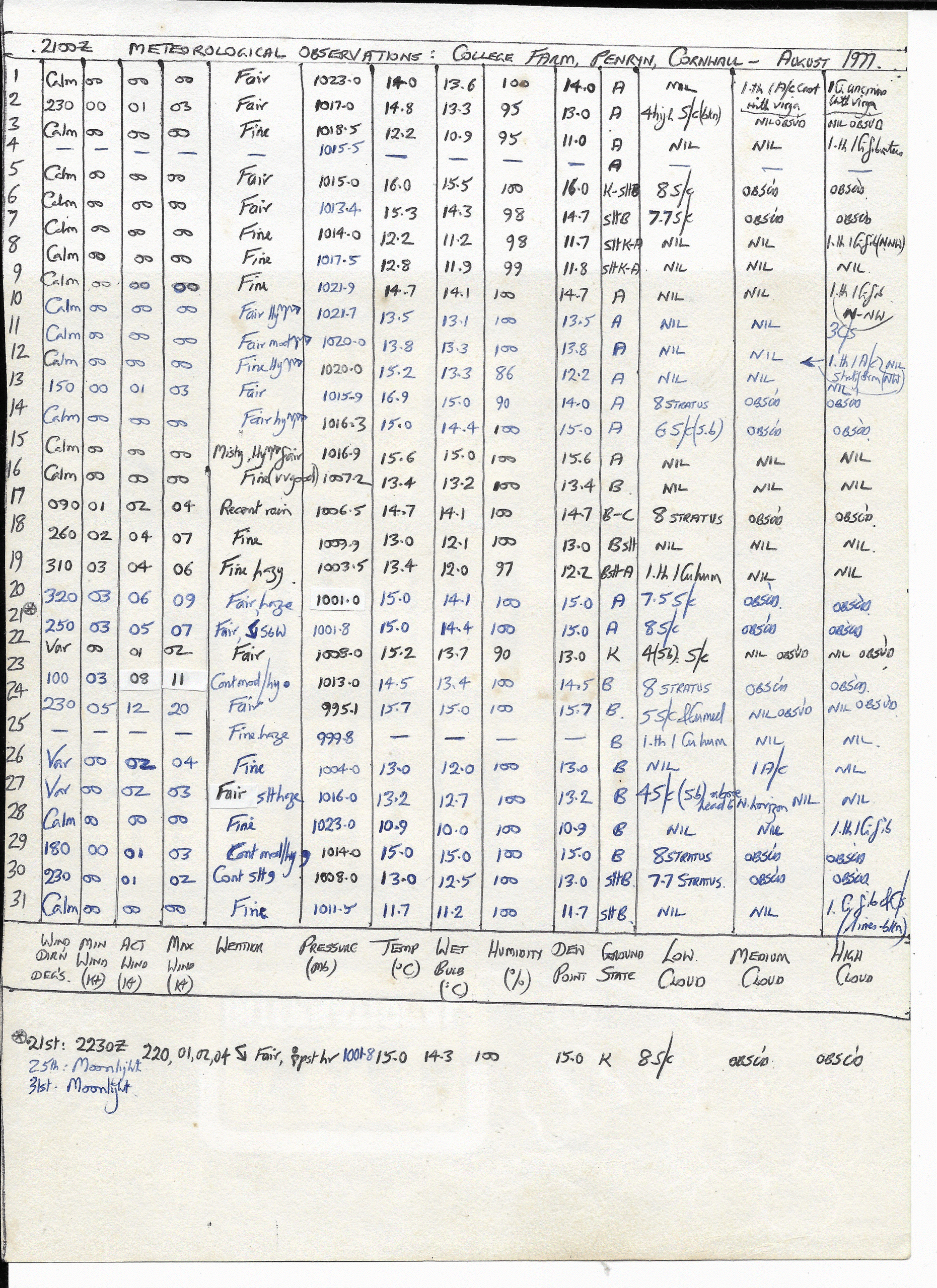August 1977: 2100Z Obs