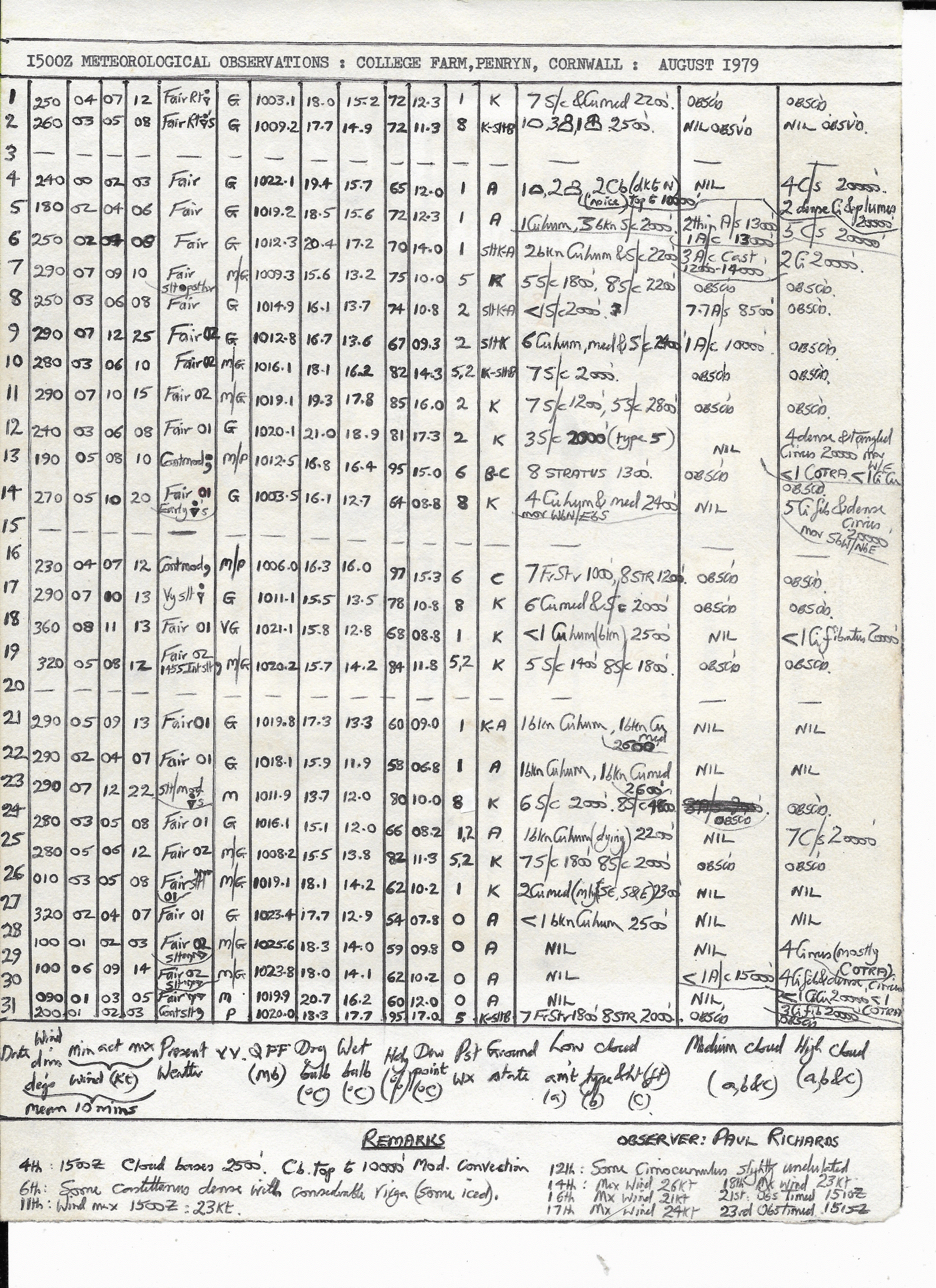 August 1979: 1500Z Obs