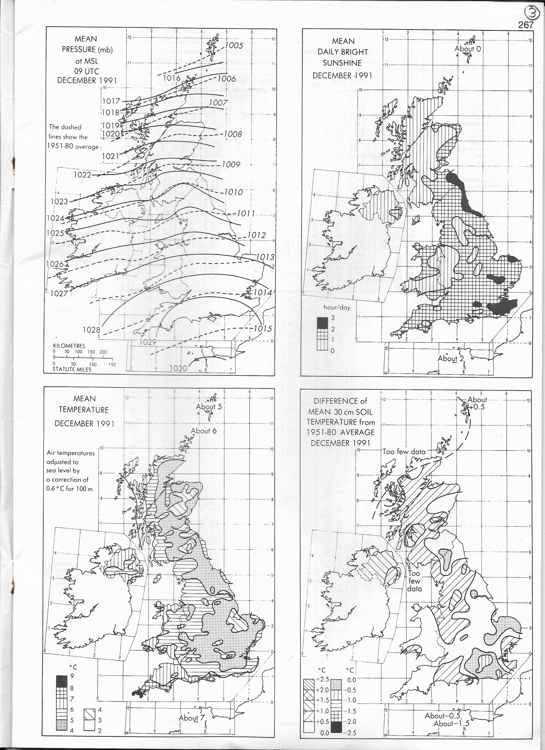 British Isles Pressure, Sunshine, Mean Temperature & Soil Temperatures: December 1991