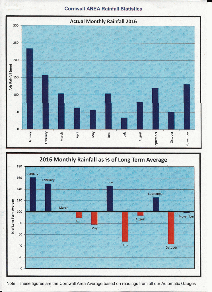 Cornwall Actual Monthly Rainfall: 2016