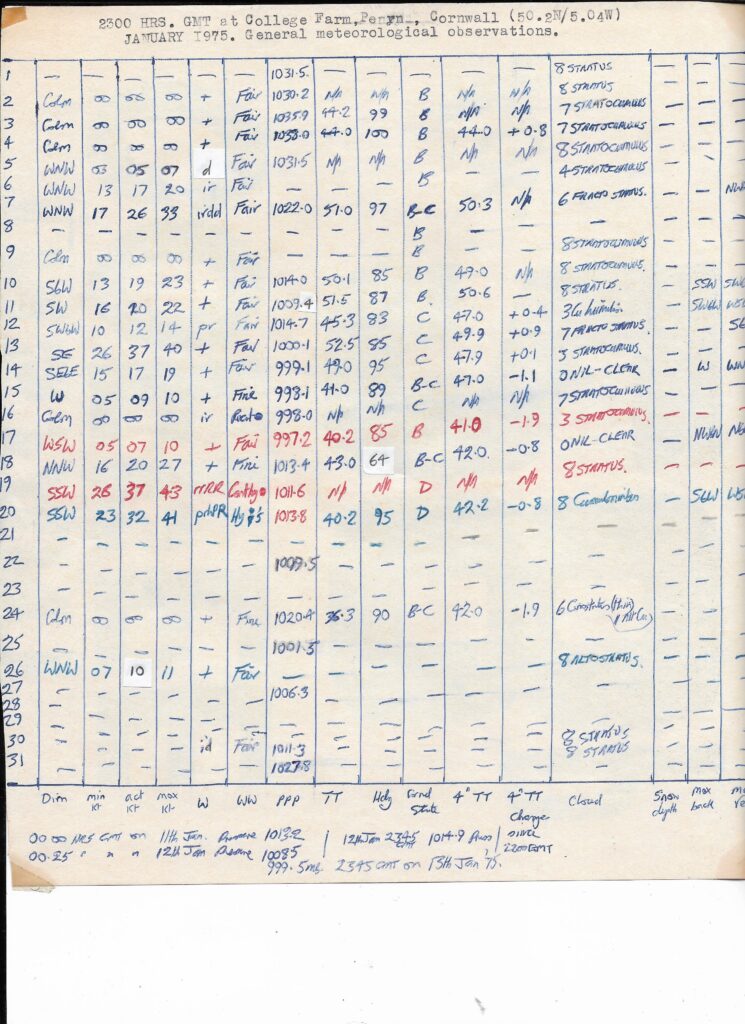 January 1975: 2300Z Obs