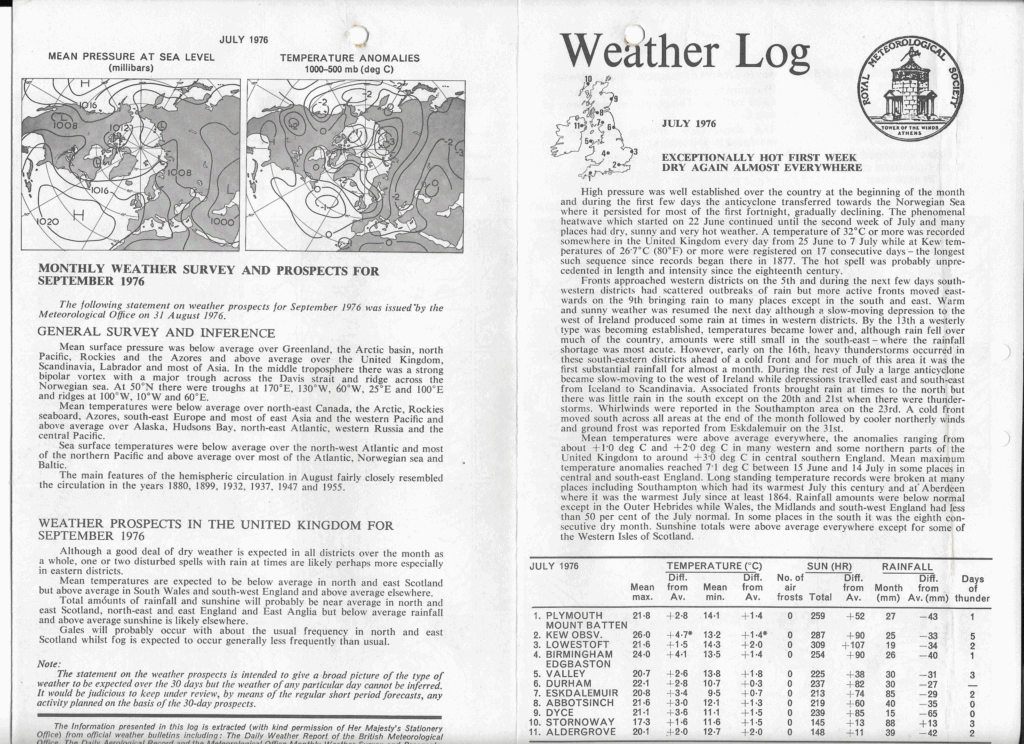July 1976: Weather Log Monthly Summary & Prospects